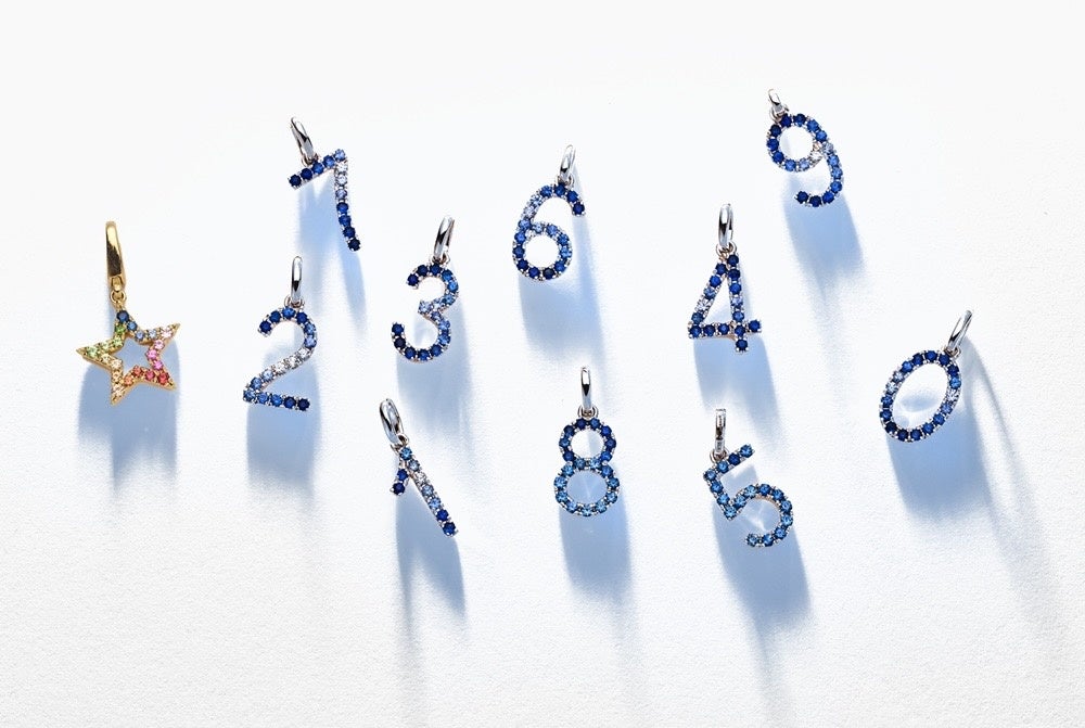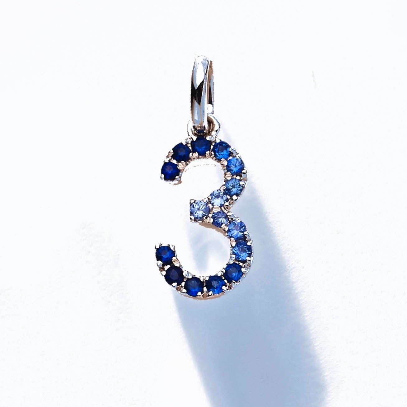 遊び心と上質な輝きが引き立つブルーサファイアグラデーションカラー 数字をモチーフにした〝ナンバーズ ペンダント トップ〟