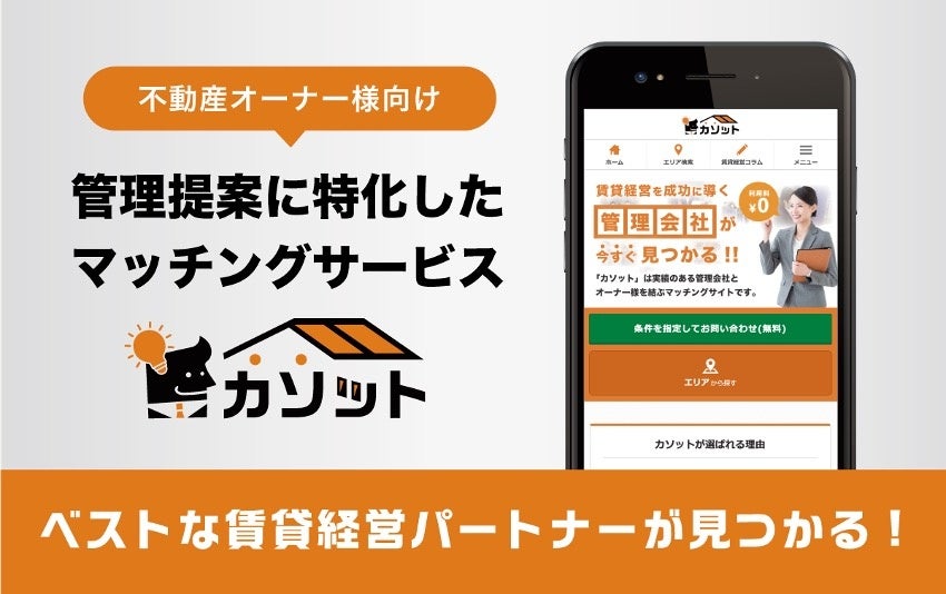 株式会社メイクスビューでは、所有物件を貸したいユーザーと管理会社を結ぶマッチングサービス「カソット」を運営していくことになりました。このサービスを通じて、ユーザーにとってベストな賃貸経営パートナーを見つけるお手伝いをさせて頂きます。