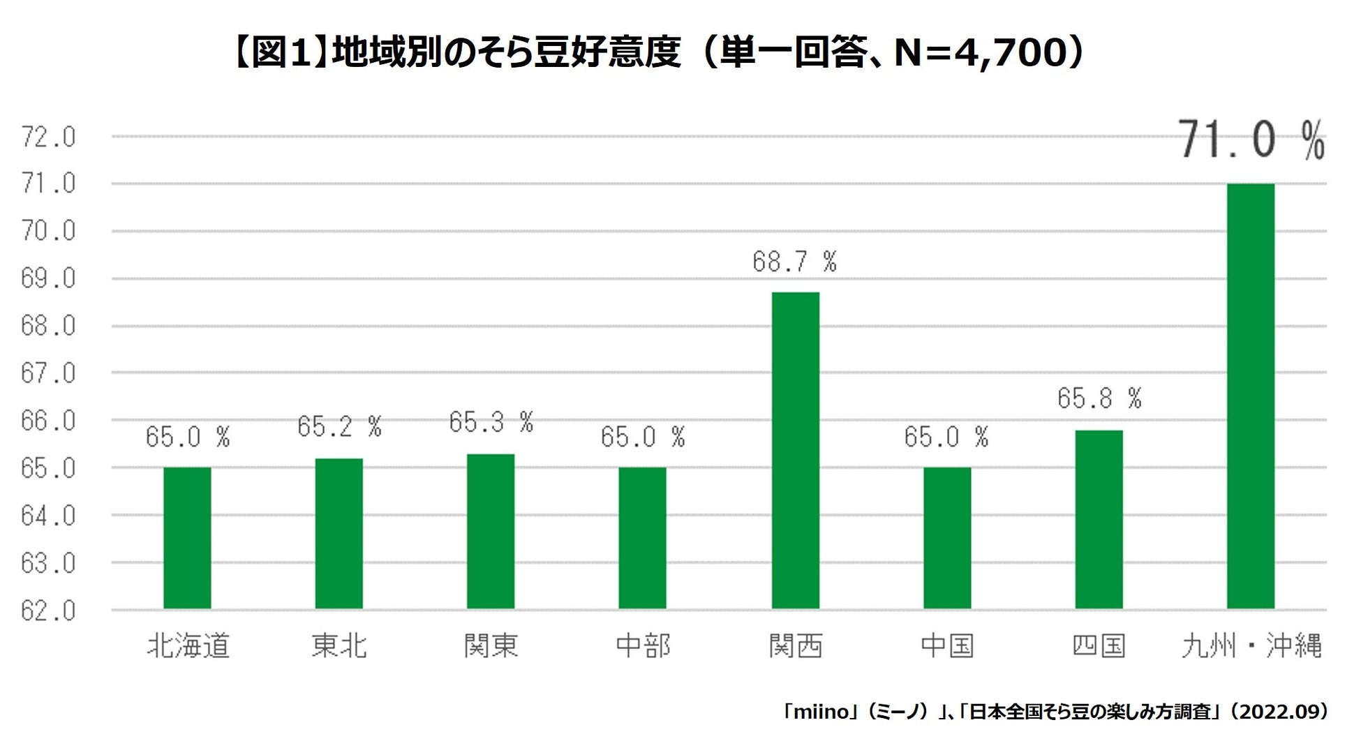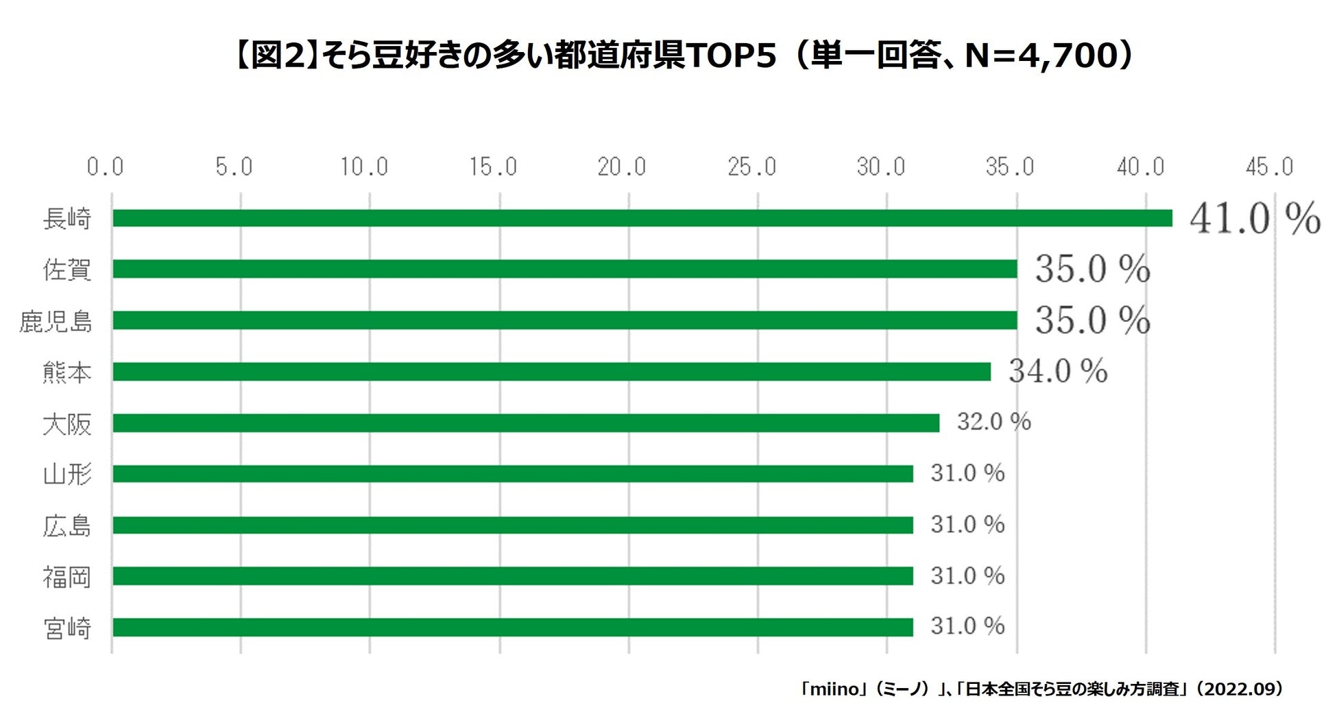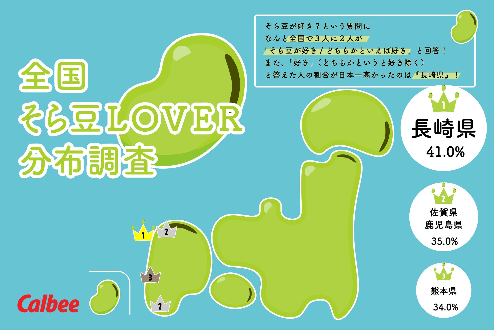 <10月13日の「豆の日」に合わせた“そら豆”の楽しみ方に関する全国調査>全国の3人に2人が「そら豆好き」TOP3は「長崎県」、「佐賀県・鹿児島県」、「熊本県」と九州が上位を独占