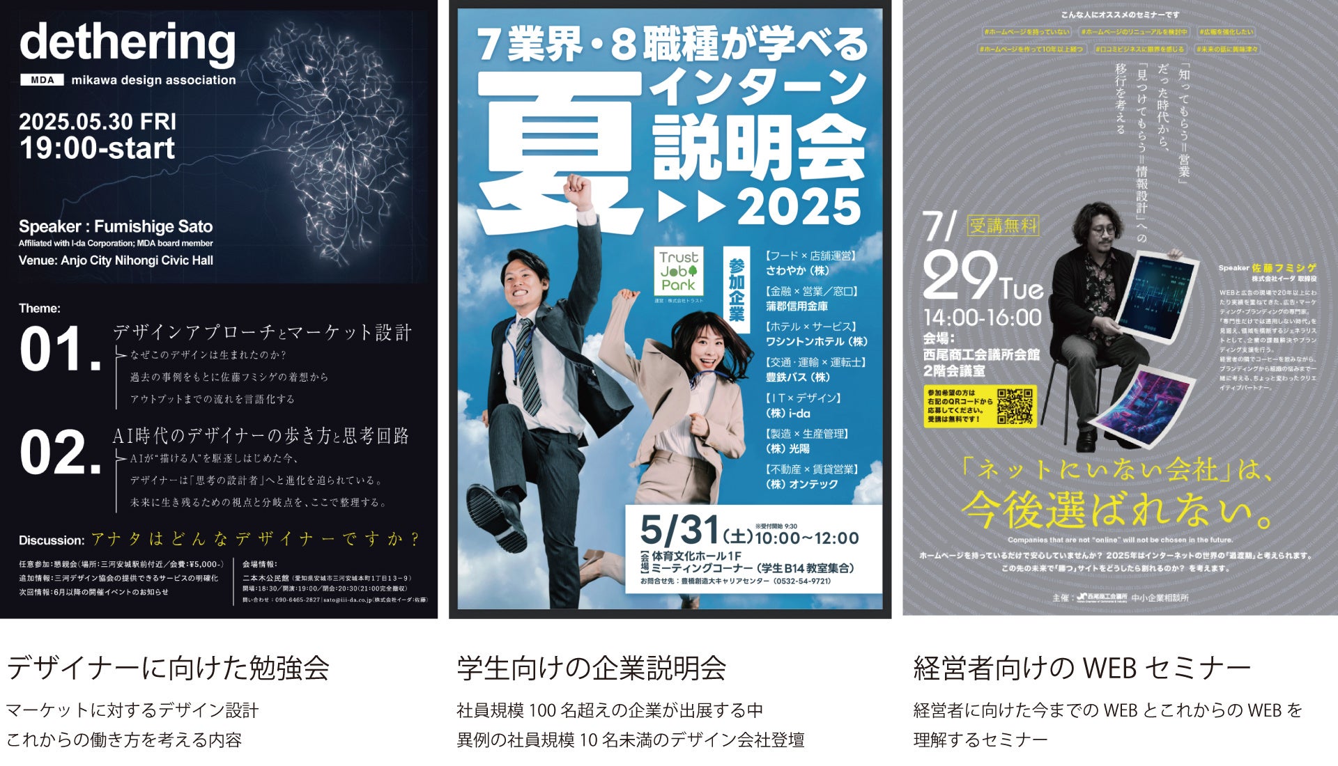 テーマは「地方の情報設計」「中小企業のDX」「“聞いて終わらない”ウェビナー」など。