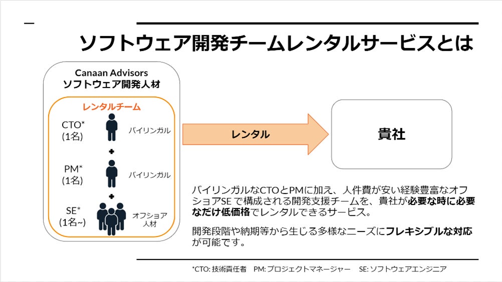 ケイナン・アドバイザーズ株式会社(本社:東京都港区、代表:山下徳正)は、2022年9月2日に新しい形のソフトウェア開発支援サービスをリリースしました。デザイン思考コンサルタントと共にUI(ユーザーインターフェース)を設計することを目的とした「デザインスプリント」ワークショップと、CTO(技術責任者)+PM(プロジェクトマネージャー)+SE(ソフトウェアエンジニア)で構成される開発チームレンタルサービスを組み合わせ、デザインからローンチまで一貫してサポートする革新的なソフトウェア開発支援サービスを業界最安値で提供いたします。
