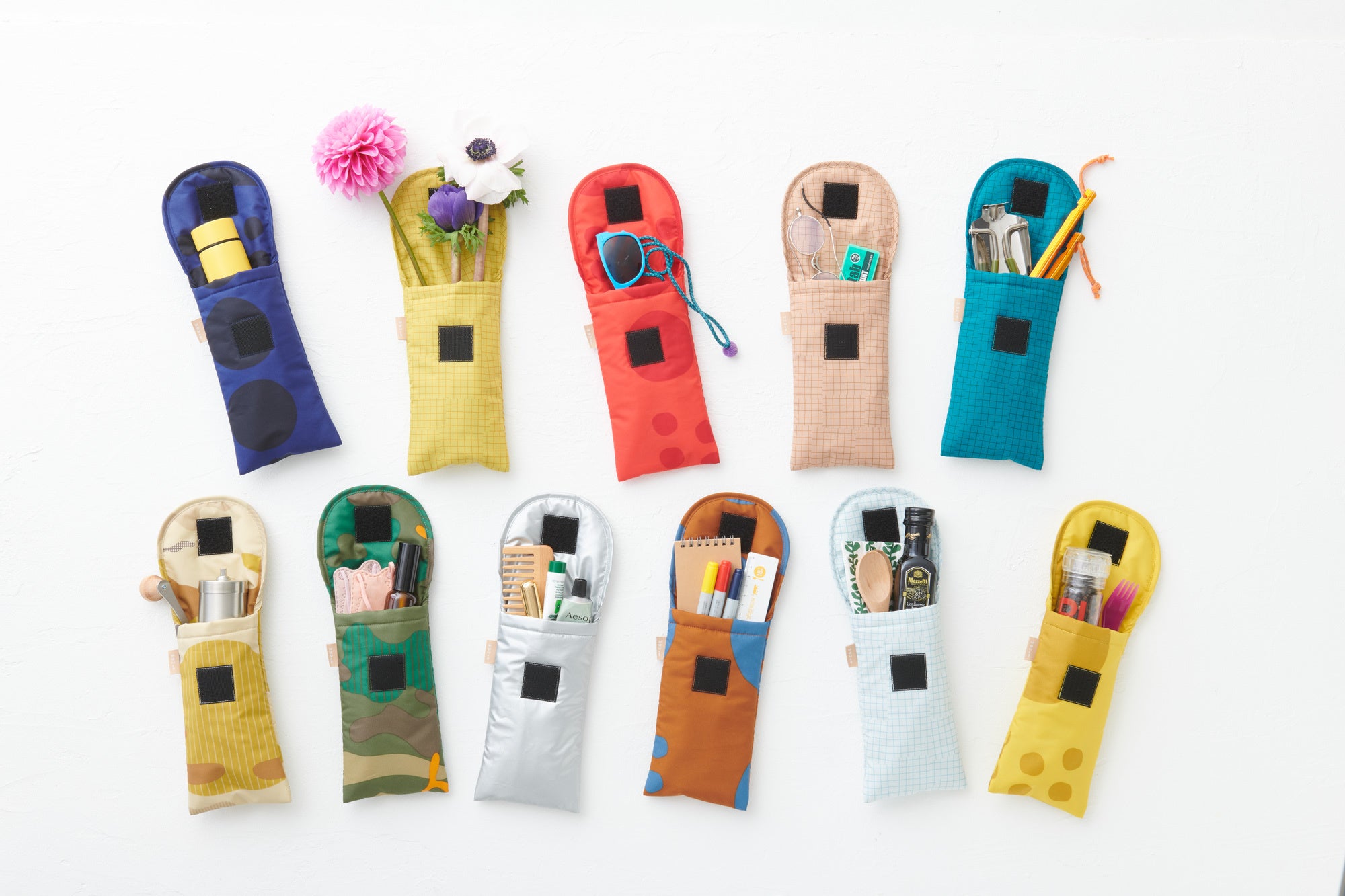 第1弾はクラッチバッグ、ガジェットケース、サークル巾着の3タイプ。