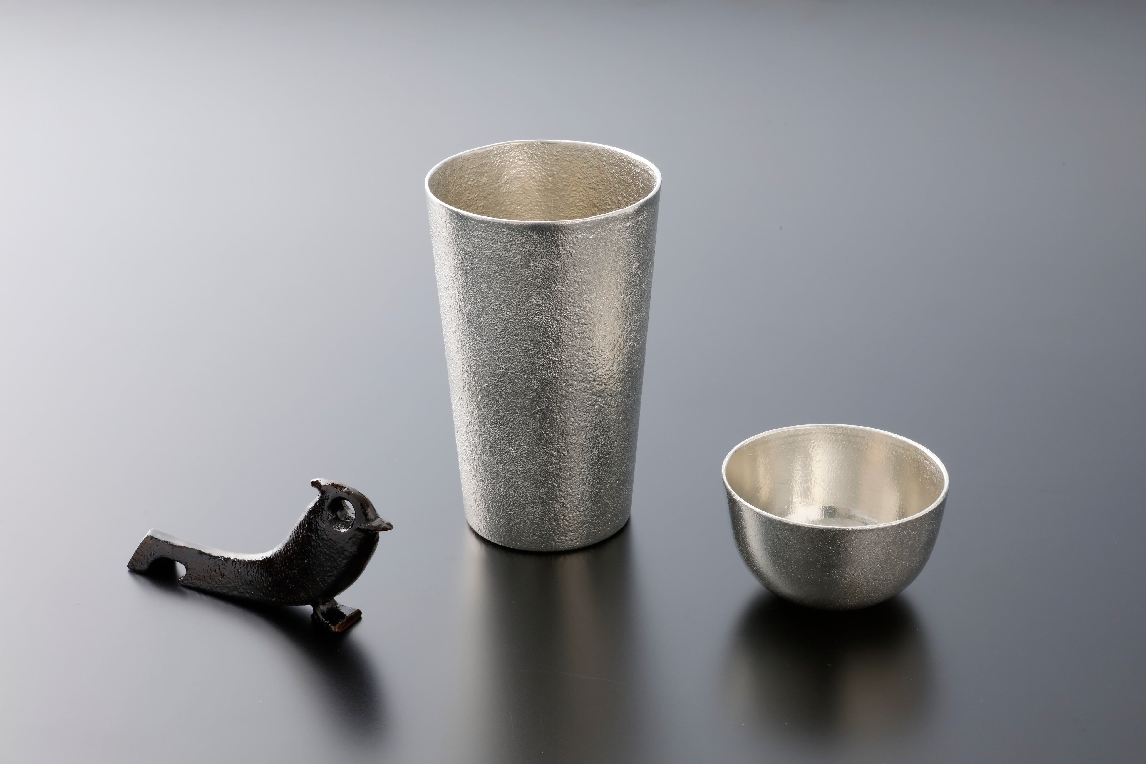 日用品や自動車のエンジン部品、土管など、さまざまなジャンルで使用されていますが、私たちの生活とは少し縁遠く感じる人も多いと思います。そんな鋳物をみなさんに身近に感じて楽しんでいただけるように、自社ブランド「重太郎」では、ビアグラスやぐい呑みなどの生活にまつわる商品を鋳物で作っています。