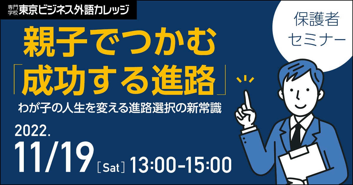 本セミナーは、近年の変化の激しい就職環境と厳しい経済状況を前に、生徒本人だけなく、その親たちも不安を感じている現状から、親世代とは異なる現代の就職環境を理解し、保護者の立場からの学校選び、そのためのマネープランなどを総合的に学び、相談できる場として、実践的教育を推進する専門学校「東京ビジネス外語カレッジ」(池袋)を会場に行います。(参加費無料)