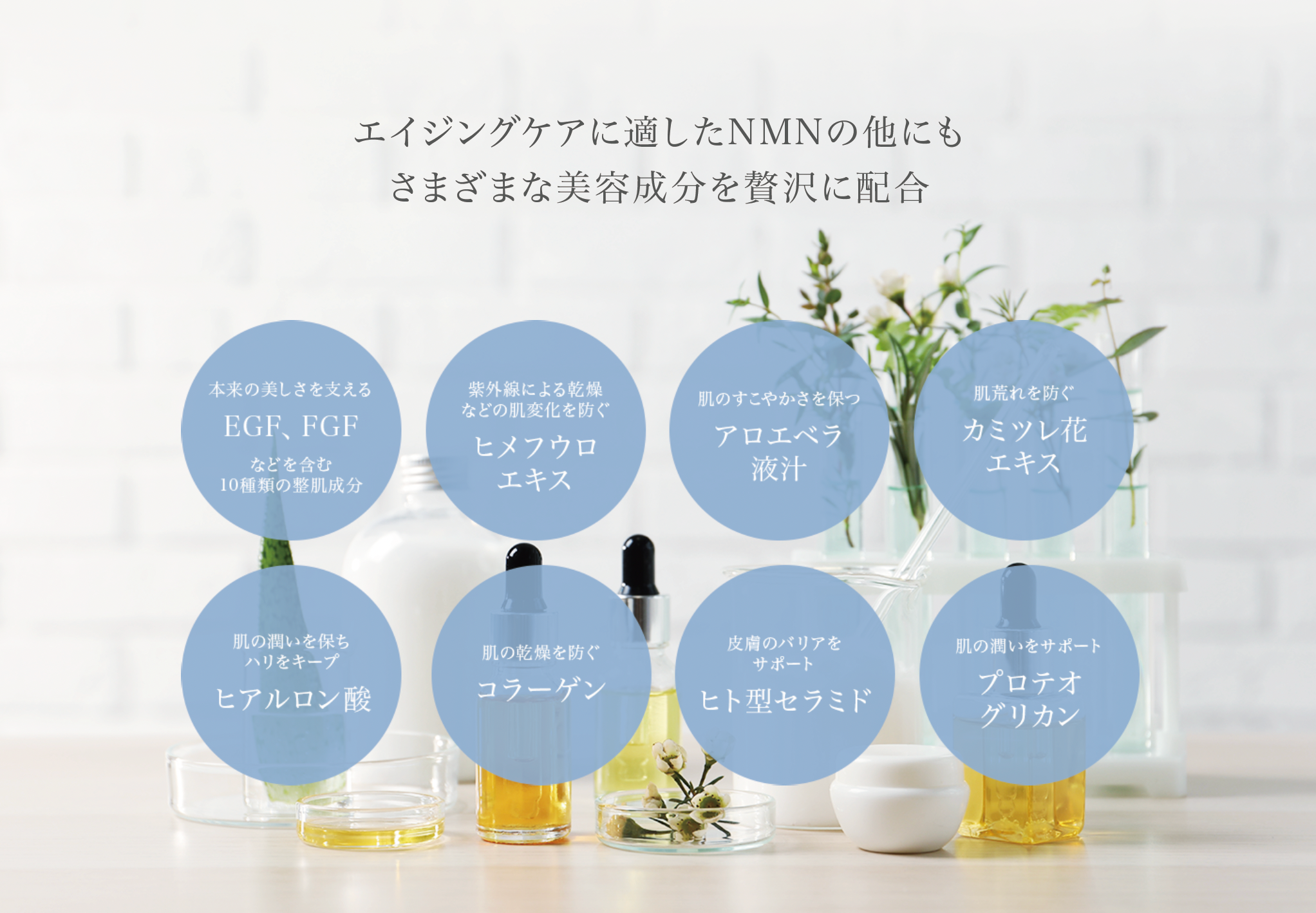1. 肌のコンディションを整えるエイジングケア成分の高純度NMN(※1)を配合