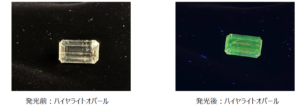 紫外線による蛍光特徴のある石の展示と、紫外線蛍光による鑑別体験