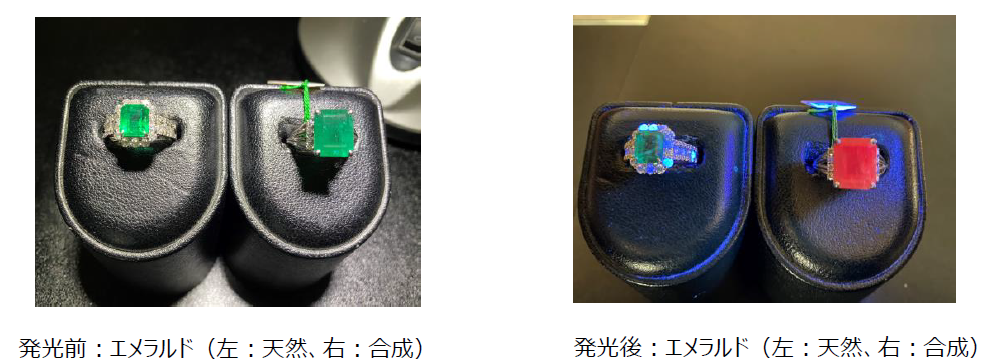 変色効果(光の波長により変化)のある希少性の高いアレキサンドライトなどの展示・体験