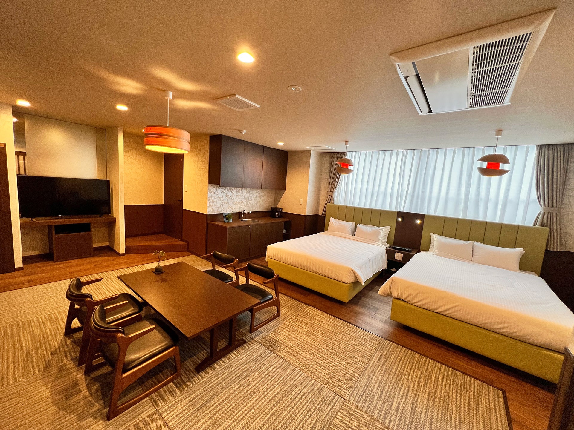 客室を含め外観や館内共用部など全面的に改装し、より快適にお過ごしいただける温泉旅館へとバージョンアップいたします。客室は既存の34部屋に加えて2部屋新設し、高級感のある和洋室が4部屋新たに誕生します。和洋室のインテリアは落ち着いた和モダンなデザインで女子旅やカップルでのご利用にぴったり。ファミリーやグループ旅行にまで対応可能な十分な広さがございます。