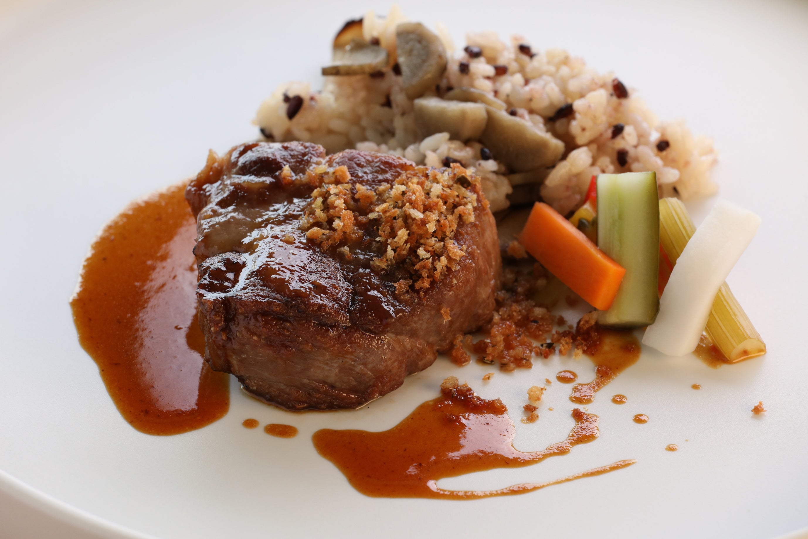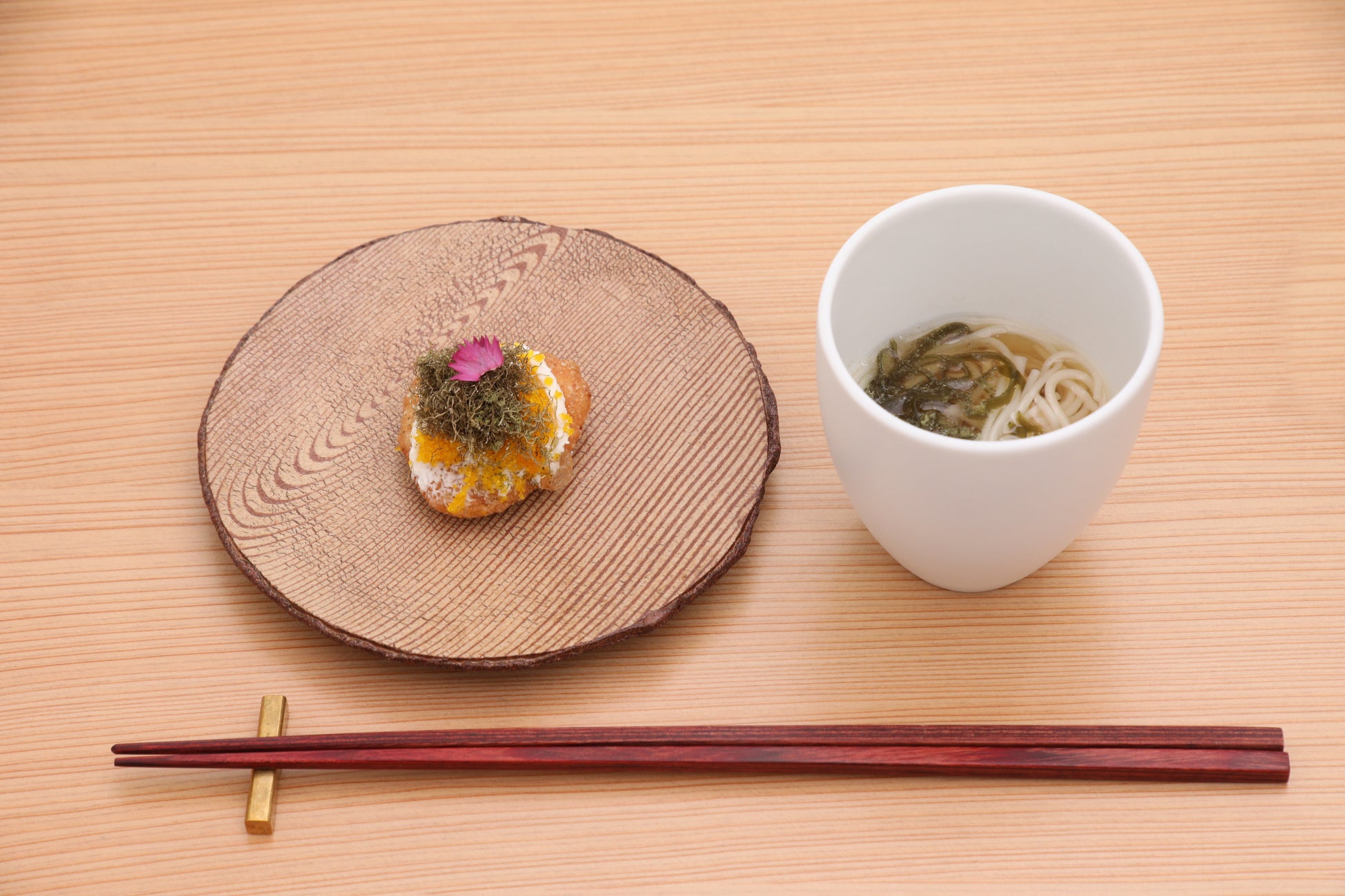 ヘルジアン・ウッドの熊野 泰博シェフが手がけた、沖縄黒糖と昆布を使ったランチコースを提供します。