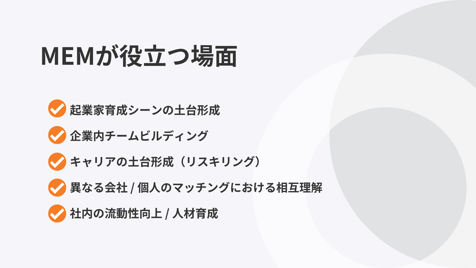 この循環を生み出すための3時間プログラム”MEM”に、ご興味をお持ちいただけたら幸いです。