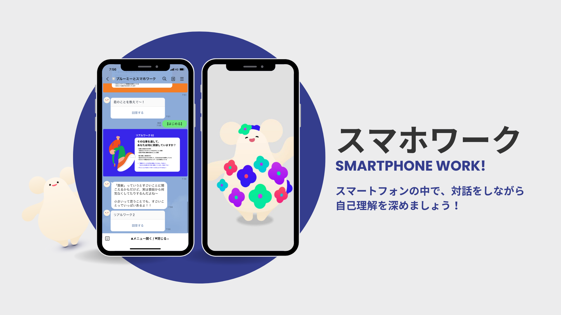 MEM(メム)では、オリジナルキャラクターのBLOOMYが「スマホ」の中から問いかけ、自己認知をサポートします。