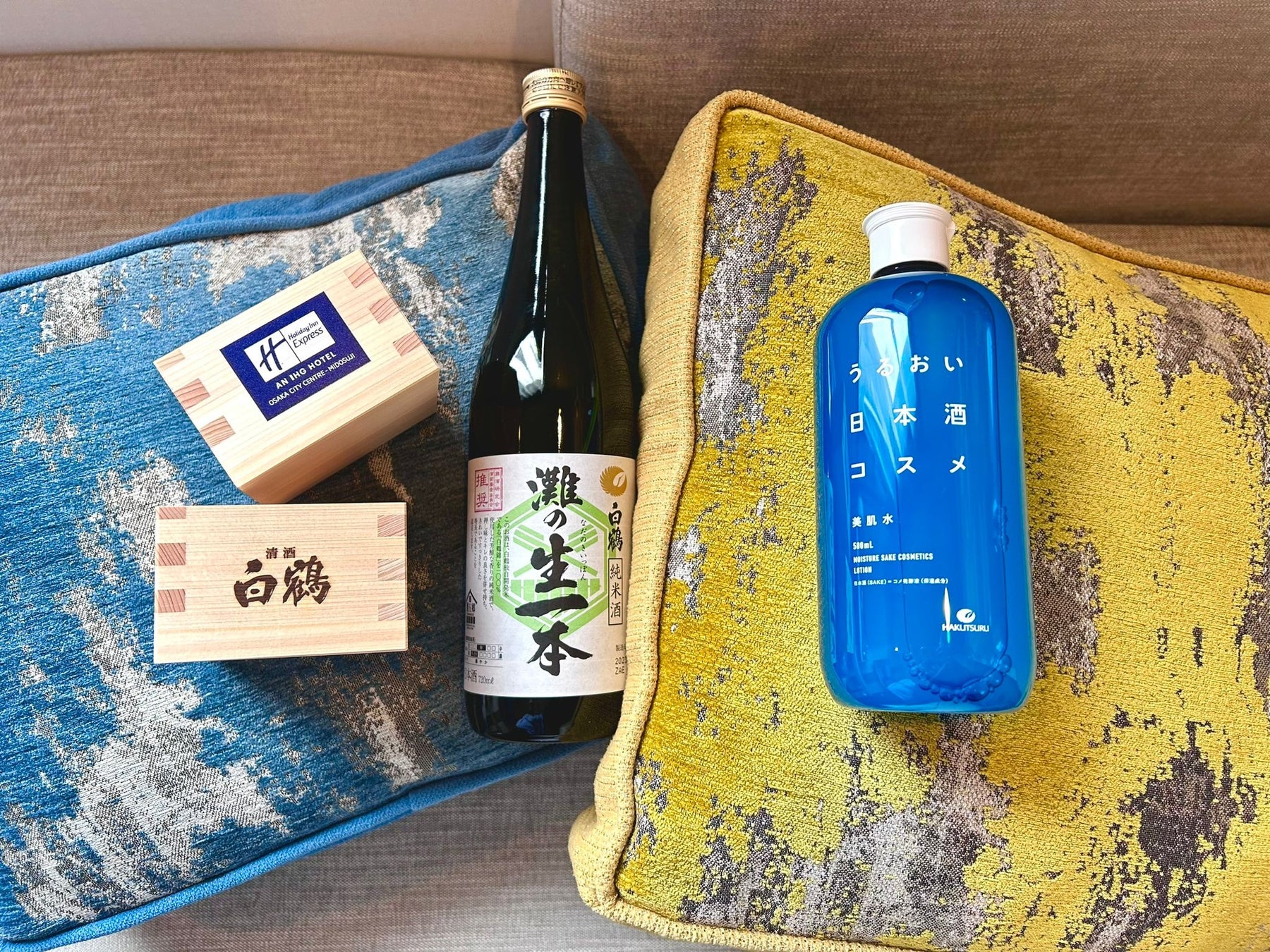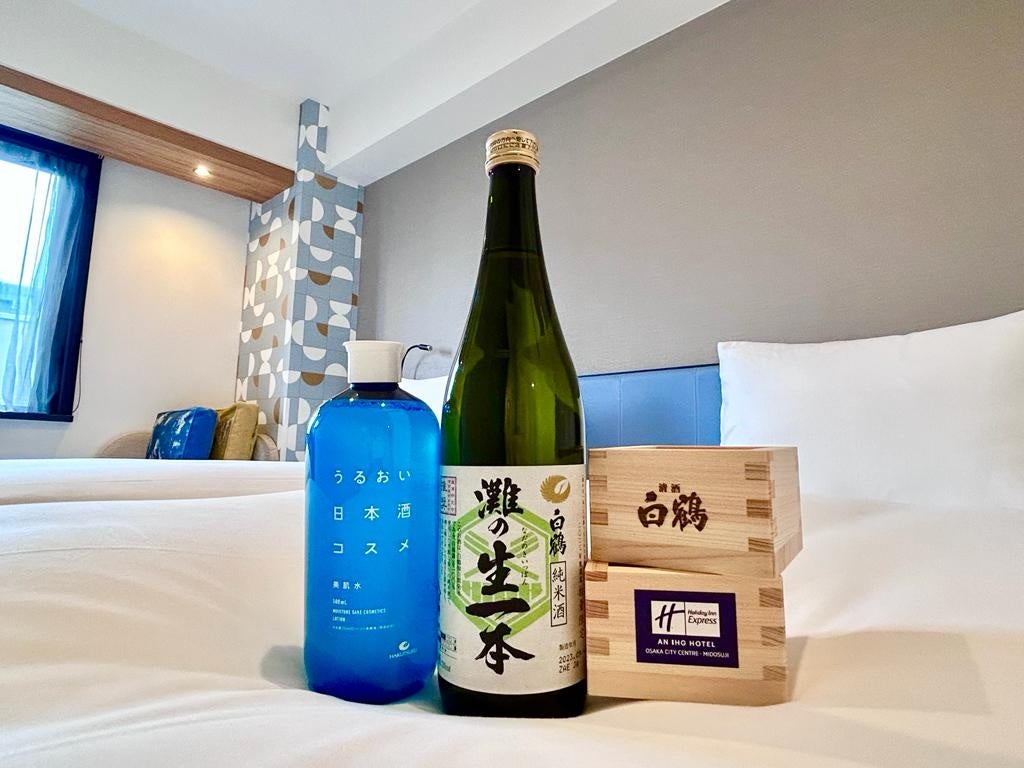 アメニティには、白鶴の独自開発酒米「白鶴錦」を100%使用した、GI「灘五郷」※認定の『白鶴 灘の生一本』をはじめ、ホリデイ・イン エクスプレスと白鶴のコラボを記念したロゴ入り『オリジナル木桝』、そして日本酒に含まれる発酵保湿成分に着目して誕生した『白鶴 うるおい日本酒コスメ 美肌水』をご用意。モダンで快適な客室に備わる「パワーシャワー」でスパ気分を味わった後、高品質なベッドで大画面のテレビを見ながら特別アメニティを心行くまで堪能でる、まさに日本酒づくしの旅をお届けします。
