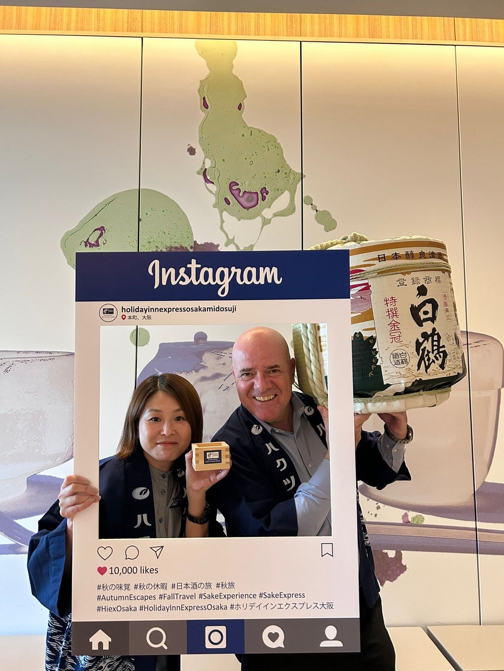 ホリデイ・イン エクスプレスと白鶴のコラボを記念した、ロゴ入りオリジナル木桝