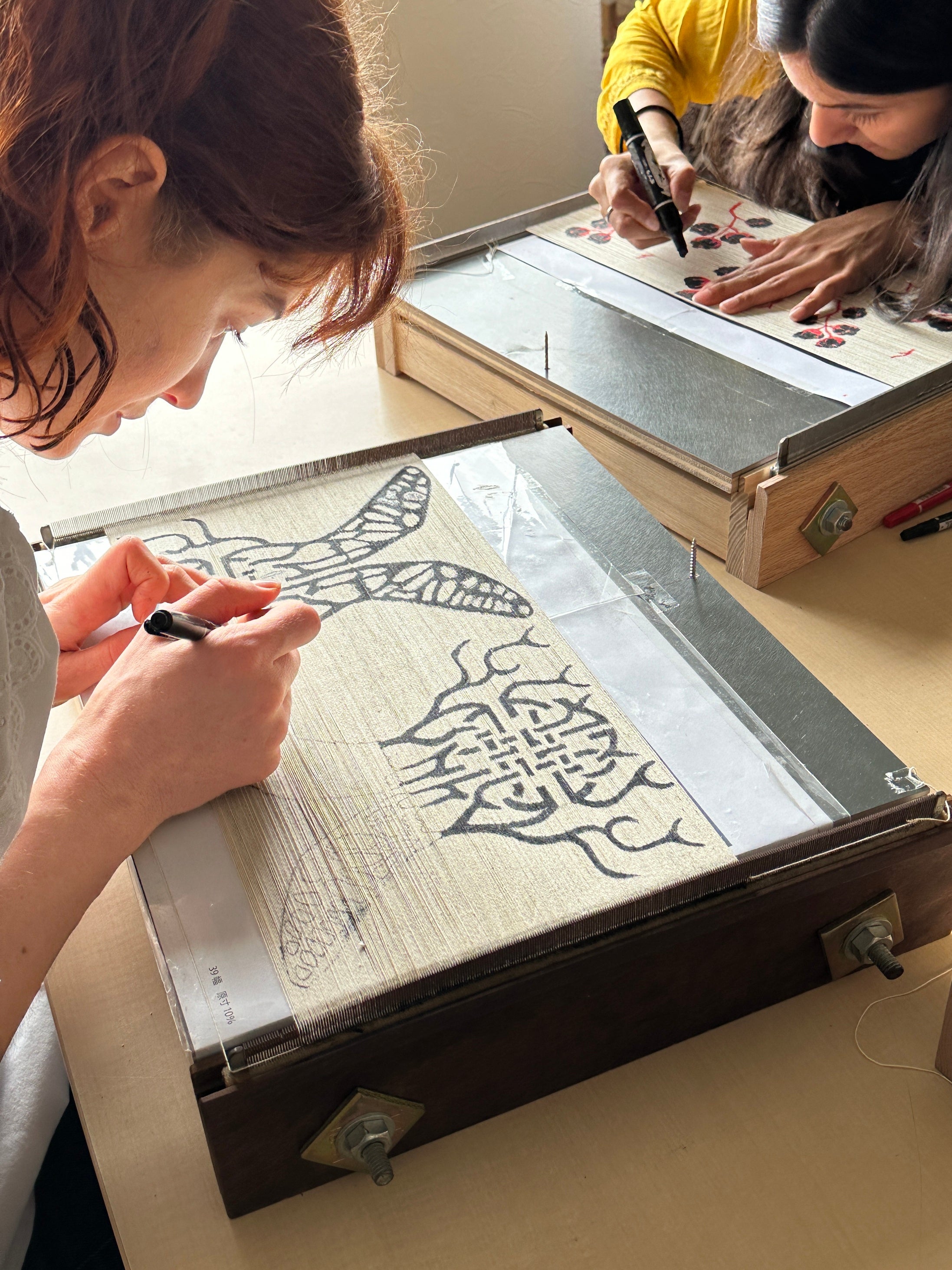 参加者は自分自身の図案をデザインするところから始まり、糸を染めて手織りを行い、最終的には独自の久留米絣テキスタイルを作成するまで、久留米絣の全生産過程を一か月程度の期間で体験する事ができます。滞在中は久留米絣の文化的な技術や職人との国際交流、その他、地域文化を視察体験する事ができます。