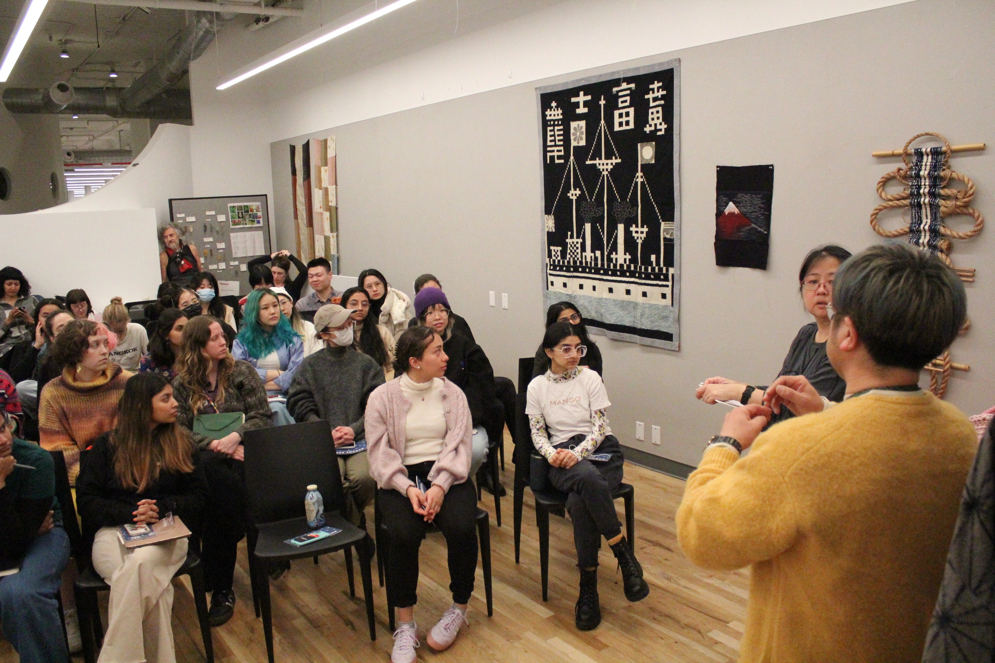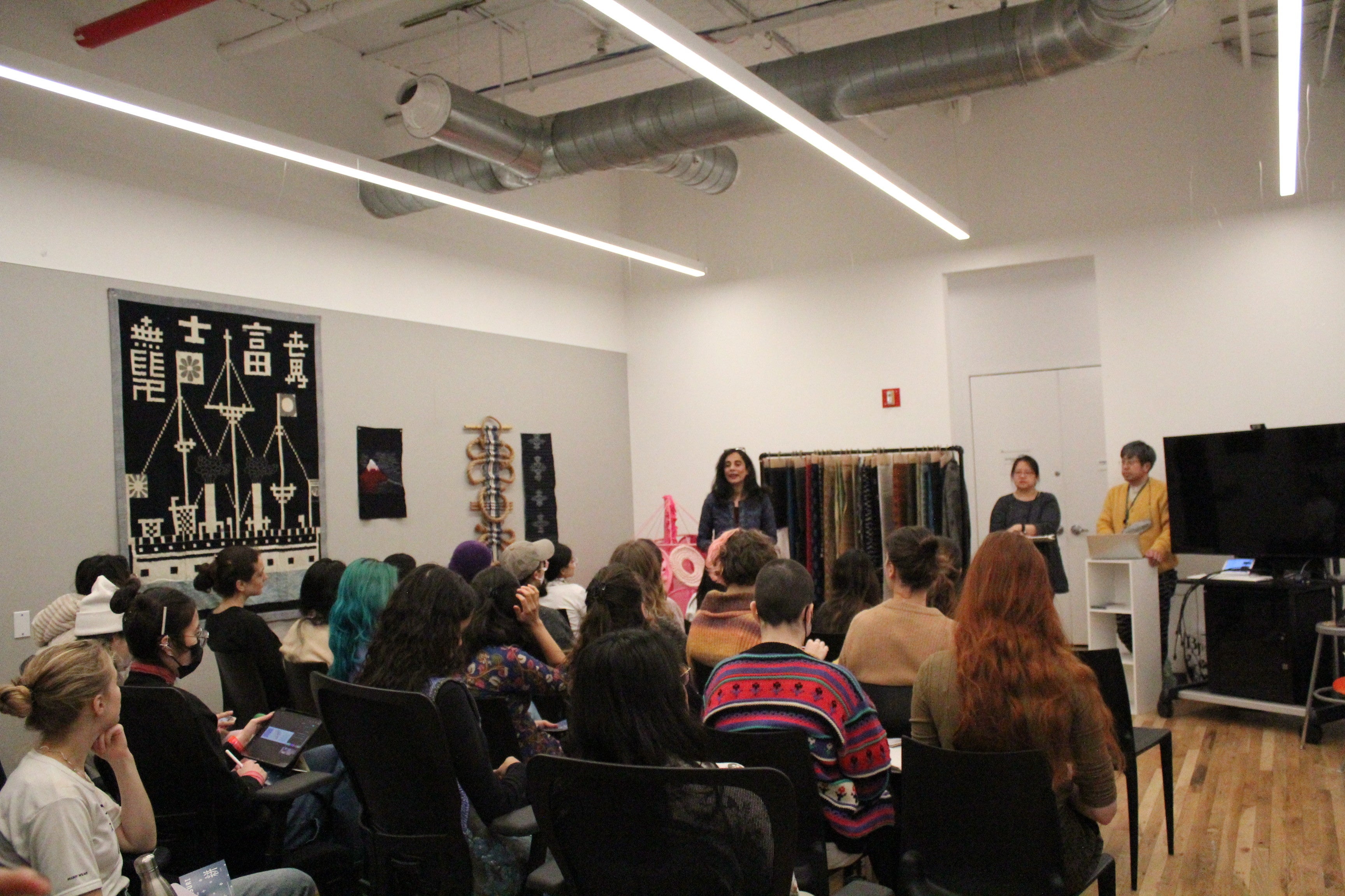 1948年創業の坂田織物は2017年から新たなマーケットを求めてニューヨークでの商談会等に参加しながら海外展開を行ってきました。しかしながら、その知名度の低さから商談会への積極的な営業活動から、先ずは価値を広く知ってもらう広報等の啓蒙活動に重きを置くようになりました。その中でニューヨークのパーソンズ美術大学 大学院テキスタイル学科での特別授業をする機会を得ることが出来き、その授業を受けた学生や卒業生を1か月程度受け入れ、学んだ学生や卒業生がアメリカに帰国後、実体験を元に彼女たちのフィルターを通して価値を伝えてもらう事を行っています。久留米絣の認知度向上から最終的にはマーケット拡大を目的としています。