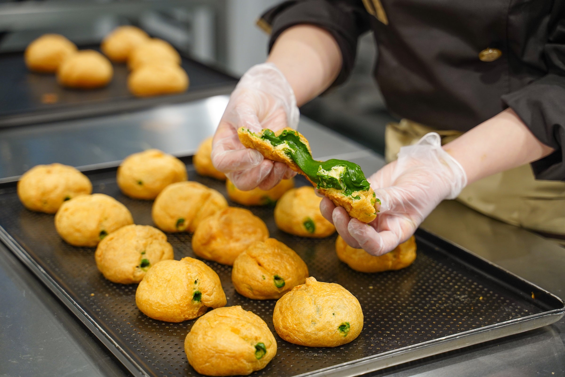 お濃茶スイーツ専門店×洋菓子の新たな挑戦!京都府産石臼挽き一番茶『お濃茶シュークリーム』は濃厚抹茶クリームを最大限に活かした納得のおいしさ。
