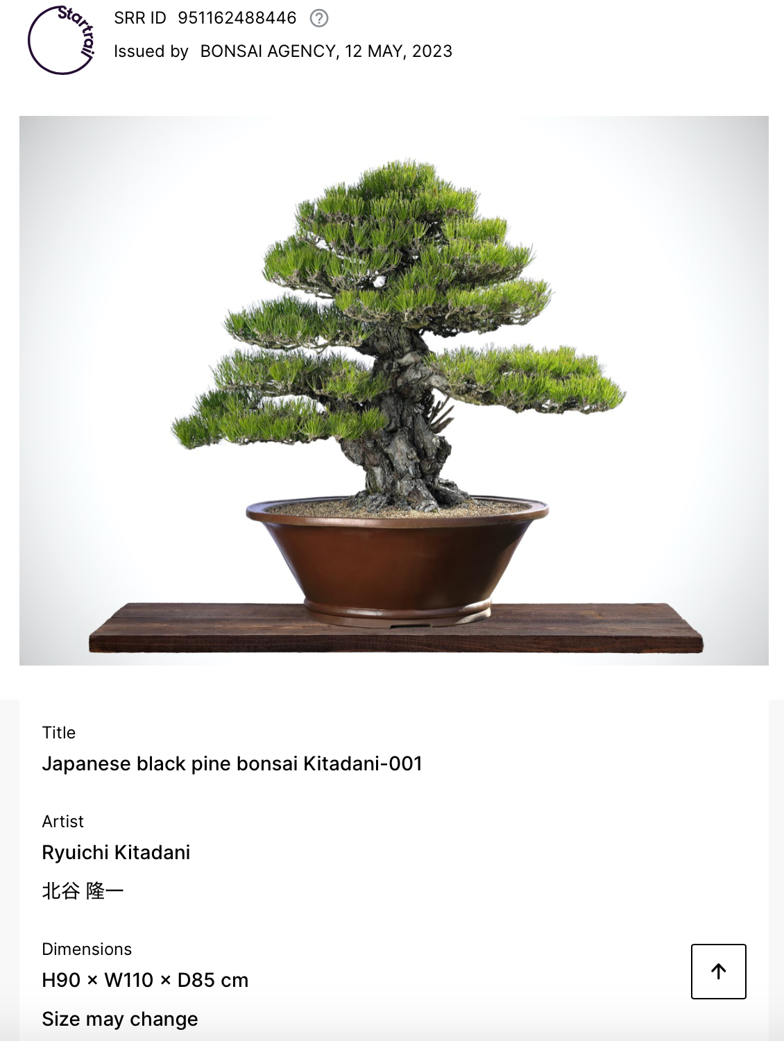 パトロンになれる盆栽のデジタル証明書を発行しているため、作品に関わるさまざまな情報が記録されます。アート作品の真正性の担保を目的にスタートバーン株式会社が開発した「Startrail PORT」を利用し、本物の盆栽とNFTを紐付けます。web環境があれば誰でもNFTに記録されている情報を閲覧することができます。(パトロンNFTのデザインの中にあるQRコードからもアクセスできる)