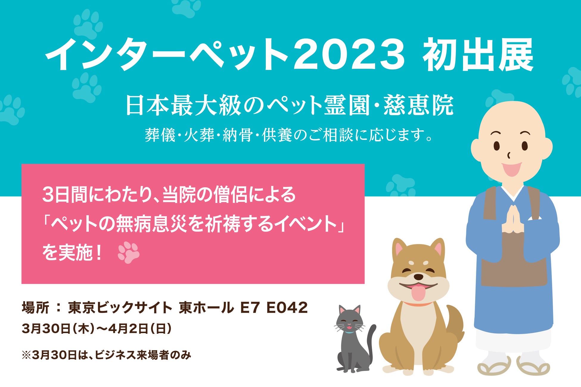 日本最大級のペットイベント「インターペット2023」に、日本最大級のペット霊園『慈恵院』が初出展!ブース内で僧侶が”大切なペットの無病息災を祈祷するイベント”も実施!