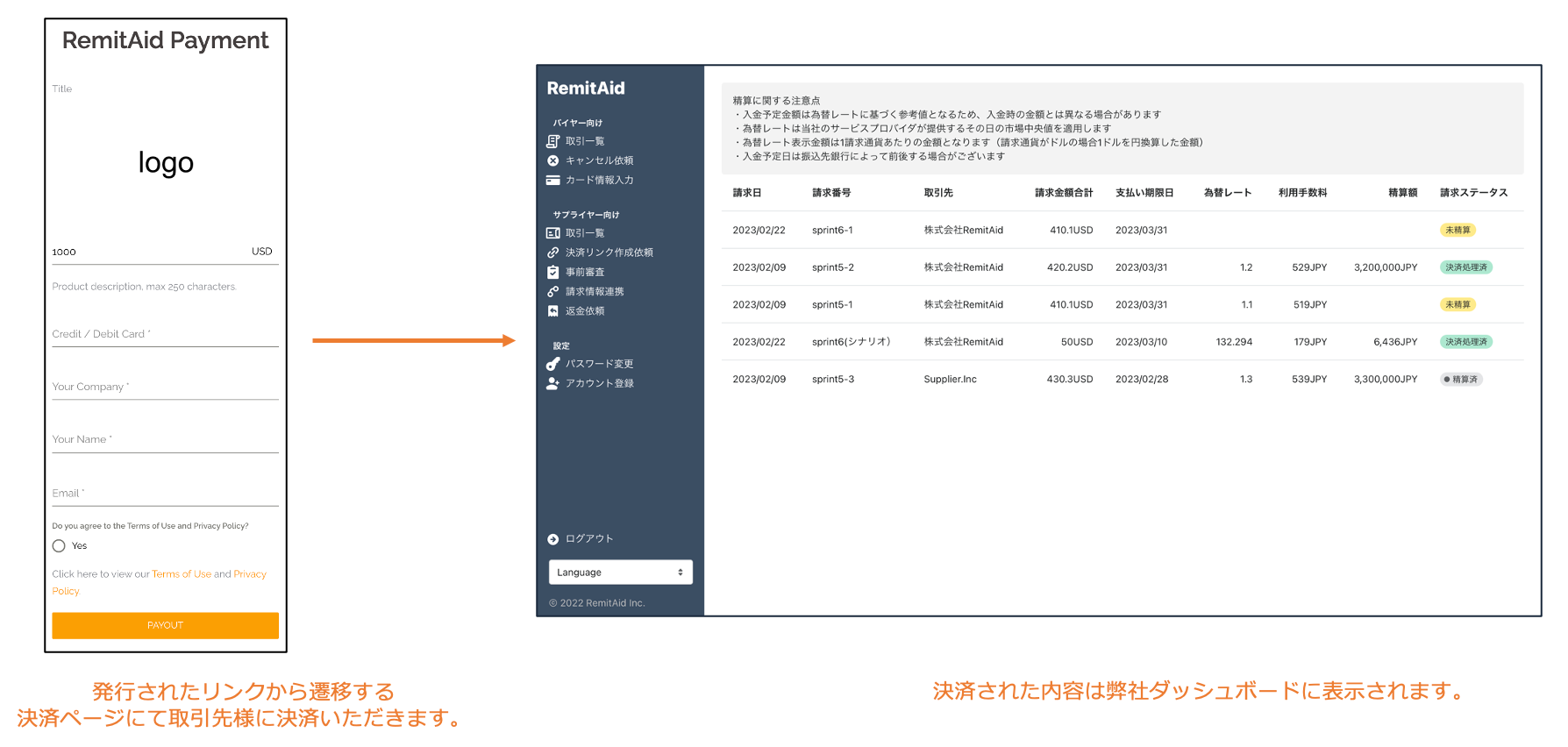 弊社サービス内で決済実行から取引管理まで完結しているため、めんどくさい手続きや取引管理の課題を解決できるのはもちろん、クレジットカードを用いてより簡単に決済してもらうことで、さらなる売り上げアップを見込むことができます。