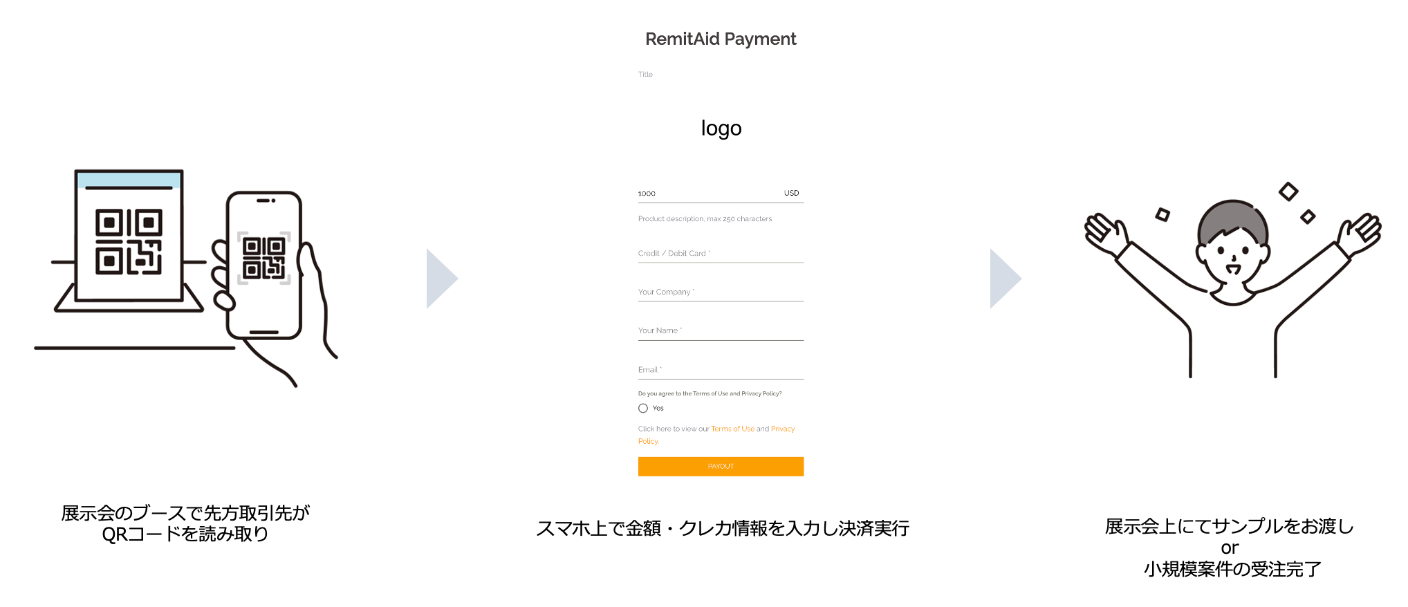海外展示会で活躍するクレジットカード決済プラットフォーム「RemitAid」(https://remitaid.io/)は、海外展示会・イベント会場での受注獲得を可能にするサービスです。