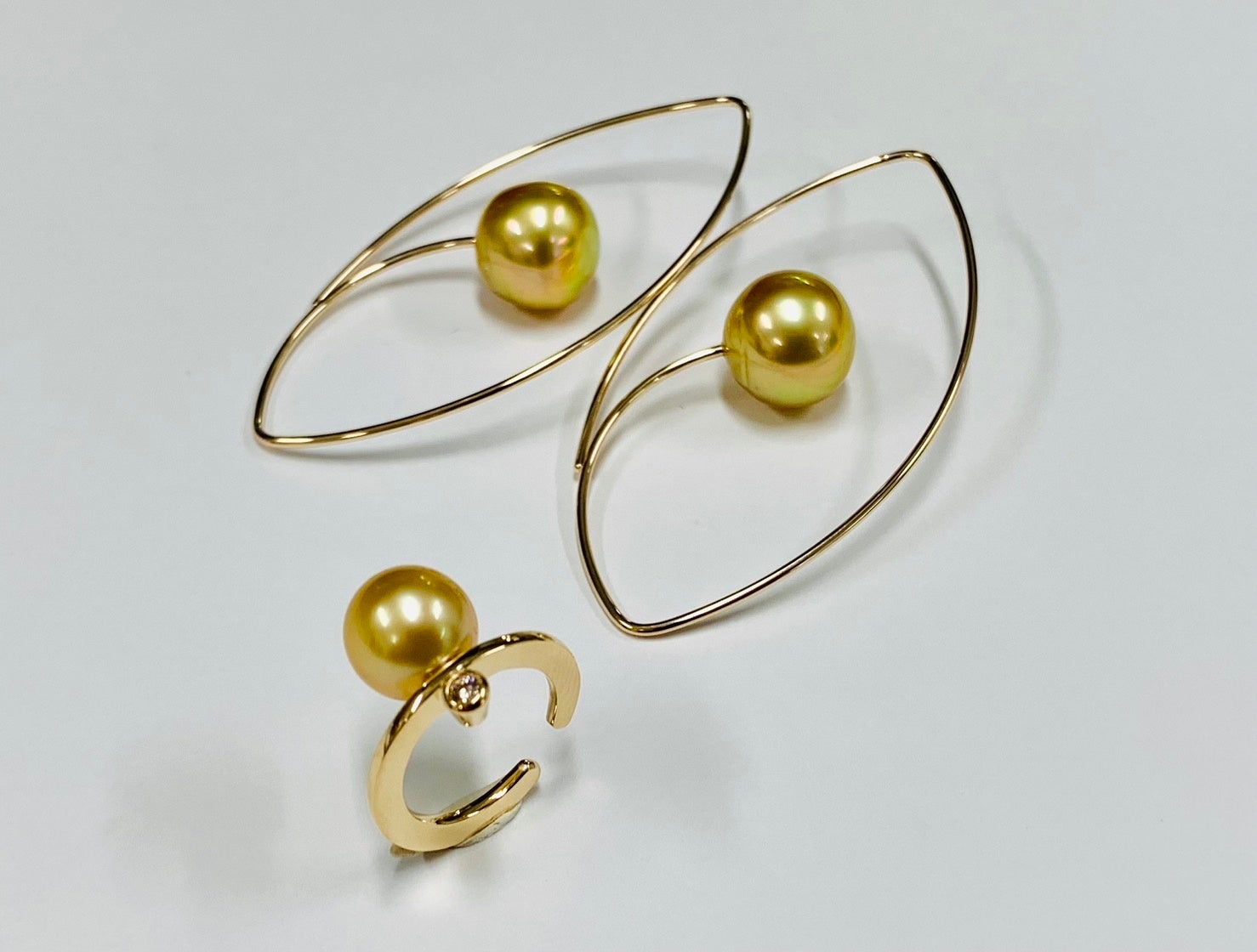南洋ゴールデンパールを使用したピアスやイヤーカフを販売いたします。