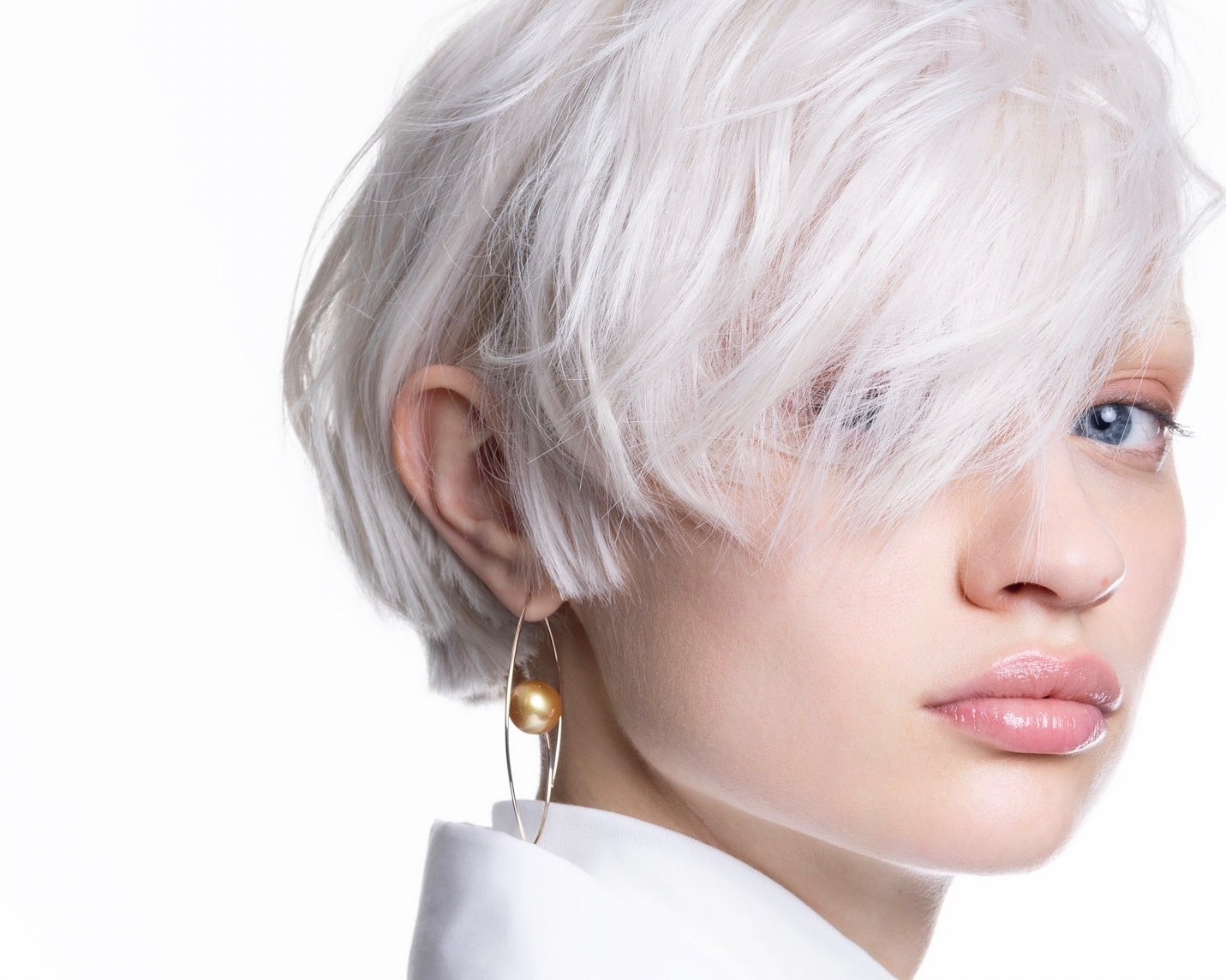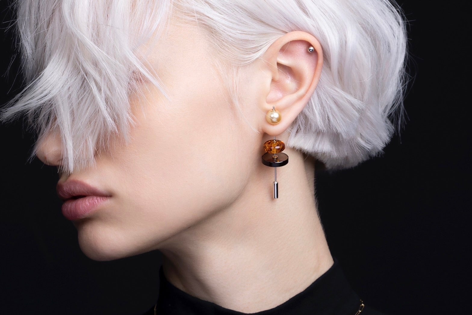 モデル着用:南洋ゴールデンパール フローティングピアス¥143,000