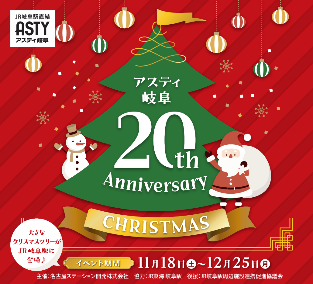 本年11月22日(水)にアスティ岐阜が開業20周年を迎えることを記念し、お客様へのご愛顧と感謝の想いを込めて、下記の内容で各イベントを開催いたします。