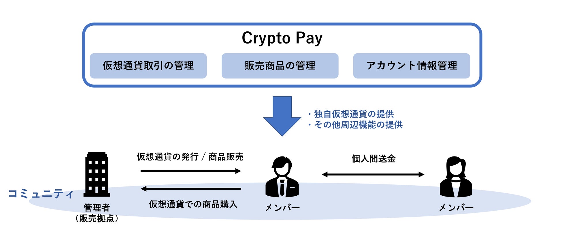 一般の方に向けては、BCに触れて頂く機会を提供しております。具体的には、購買などの身近な決済アプリとしてご使用頂き、インフラとしてのBCの在り方を理解して頂く機会を作ります。アプリにおける仮想通貨のやり取りは「コミュニティ内での商品売買時の決済」と、「コミュニティメンバー同士の個人間送金」の2通りがあります。このやり取りをCrypto Payを通じて行って頂くことで、BCを使用することへのハードルを下げ、インフラとしての在り方への理解を深めて頂くことができると考えております。スマホとPCがあれば独自のブロックチェーンを立てて、アプリを開始することができるため、どの企業様でもアプリを始めることができます。