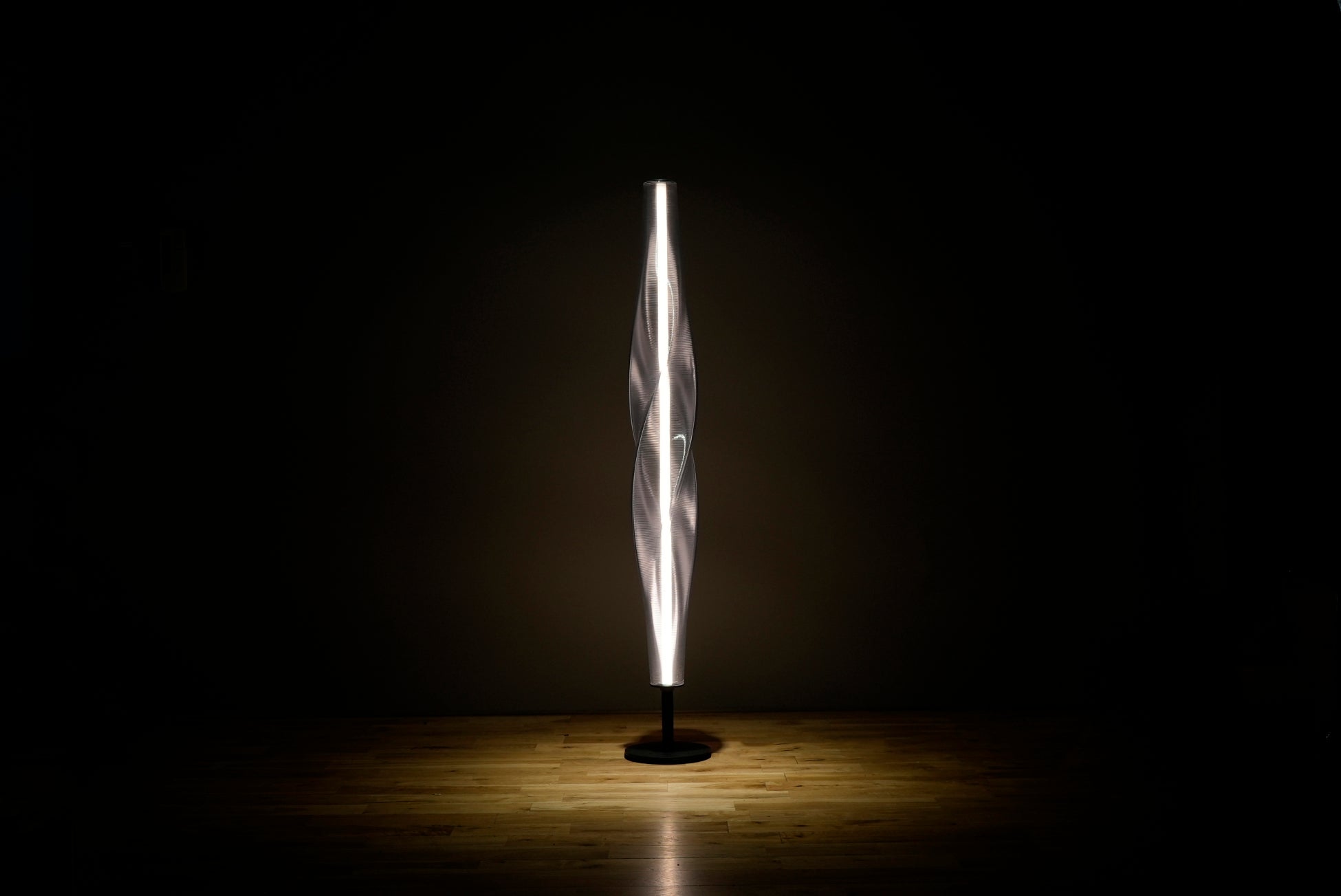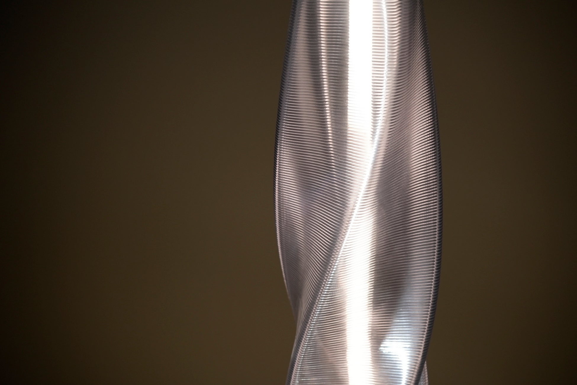 「捉えどころがなく、ゆらゆらと揺らぐ微かな美しさ」を表す「幽(YU)」という日本語を表現したライト。角度を変えて眺めると、光が歪曲し異なる表情を見せます。