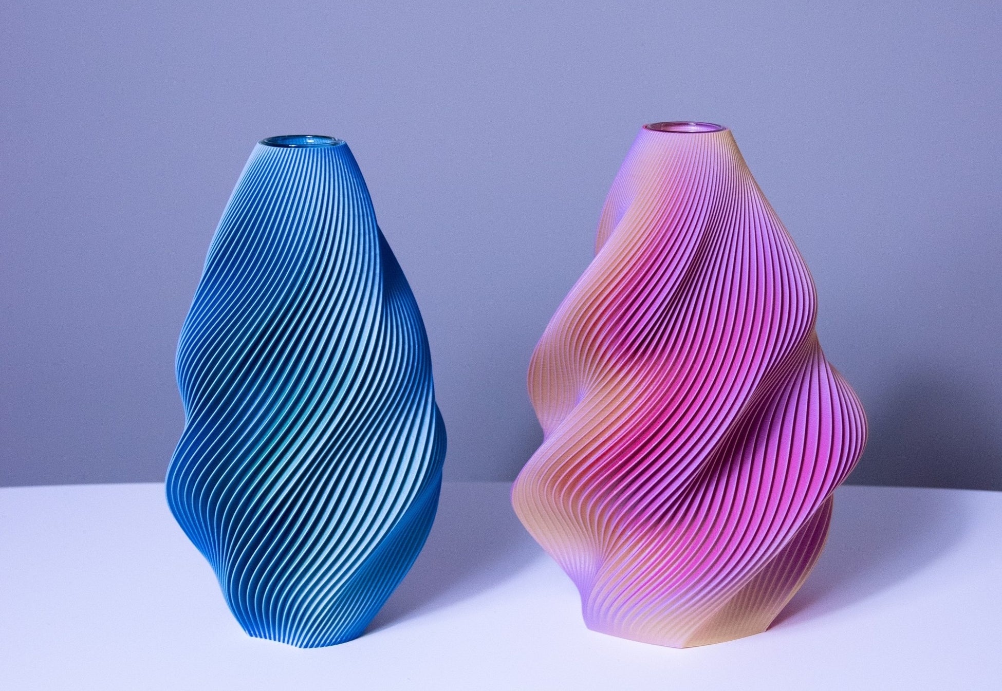 角度によって色が変化する花瓶。 お花やそのときの気分に合わせて回転させ、色と戯れるためのデザインです。