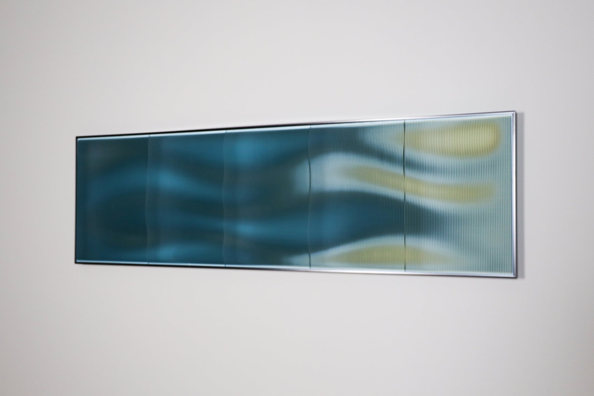 「あなたが動き続ける限り、そこに風が吹き続ける」ことをコンセプトにした壁面パネルのデザイン。日本人は自然現象に名前を付ける名人であり、風には漁師や農家の人がつけた名が2000以上もある。この多種多様な風の違いをそれぞれ形状と色彩、変化の仕方で表現しています。