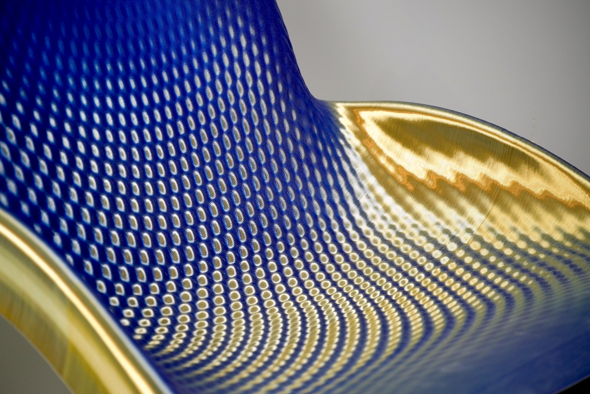 大型の3Dプリントにより、その視覚効果を最大限に高めるデザインであり、表面の細かなテクスチャは無数に光を反射し、煌びやかな印象を生み出しています。