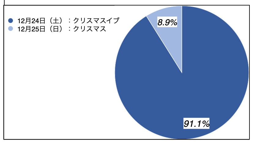 次いで、「クリスマスイブ(24日)」が8.9%、「クリスマス(25日)」が11.1%となっています。