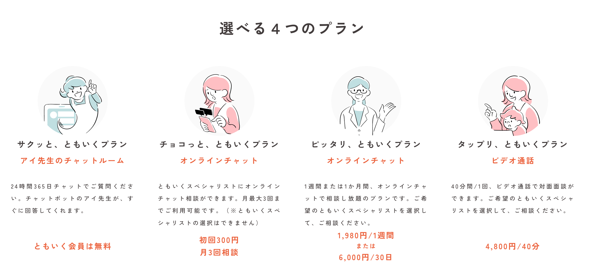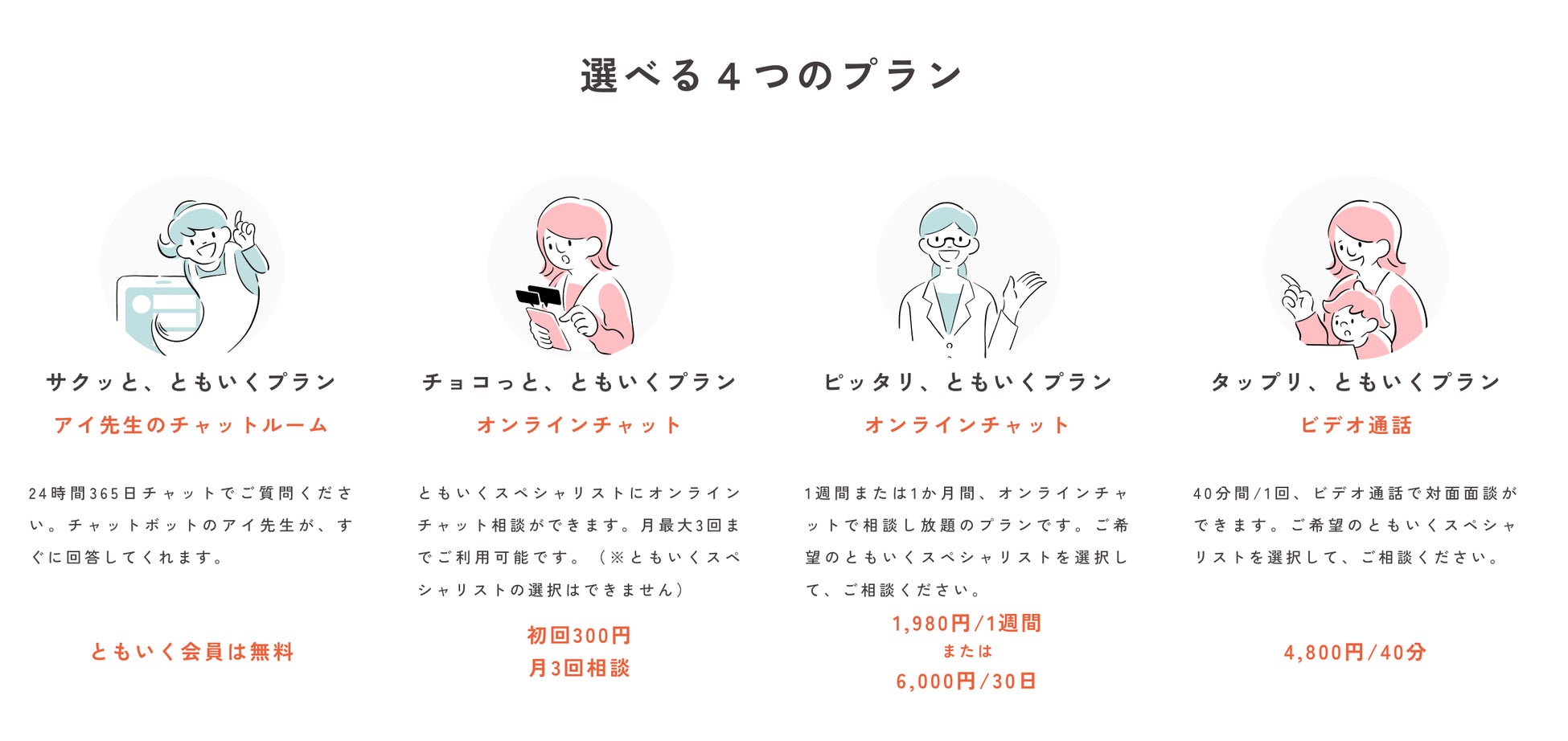 「ともいく相談サービス」が提供する4つのプラン