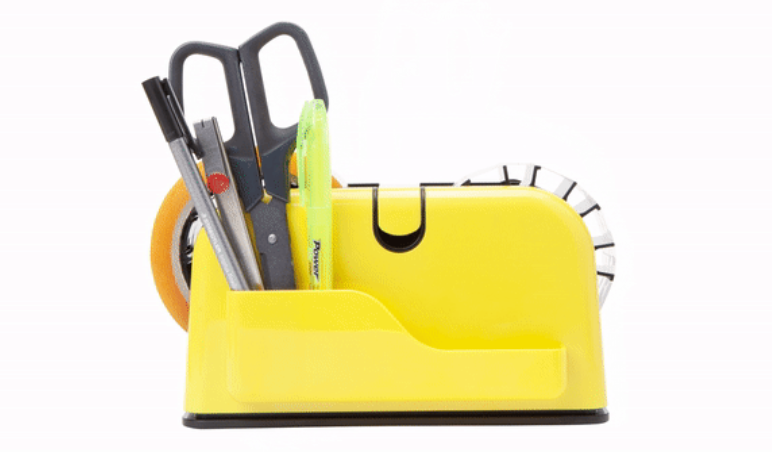 この半自動テープディスペンサーは、家に眠っている梱包用テープを使い刃を替えるだけで好みの幅に大量カットするアイデア文房具です。一つのテープを使って無駄をなくしコストカットを実現し、回転式のラバー製ダイヤルによって手首の負担も軽減します。安定感のあるボディはグッドデザイン受賞。テープのカット面が直線ではがしやすいのも特徴一つで最大テープ容量は80mまで対応なのも嬉しいですね。秘密部分の内蔵式カッターは、カバーがついて子供にも安心な設計となっています。付属の静音テープを使用すればより高いパフォーマンスを引き出し、音が静かで動きも滑らかな文句なしの逸品。