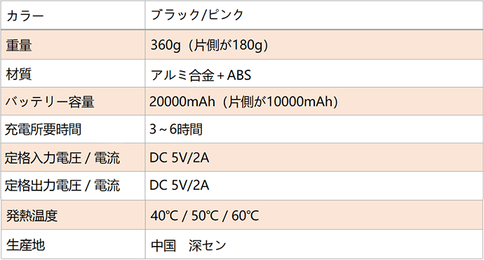左右2つに分けて使用可能!20000mAh大容量バッテリー搭載