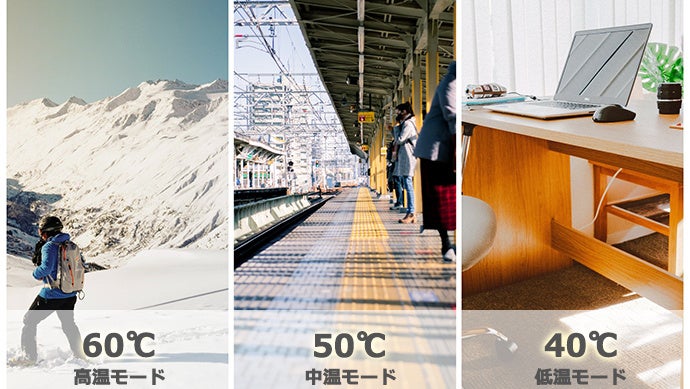 さらにその大容量バッテリーにより、40℃モードで9時間以上の連続使用もできます。バッテリー残量もLEDモニターから簡単に確認できます。