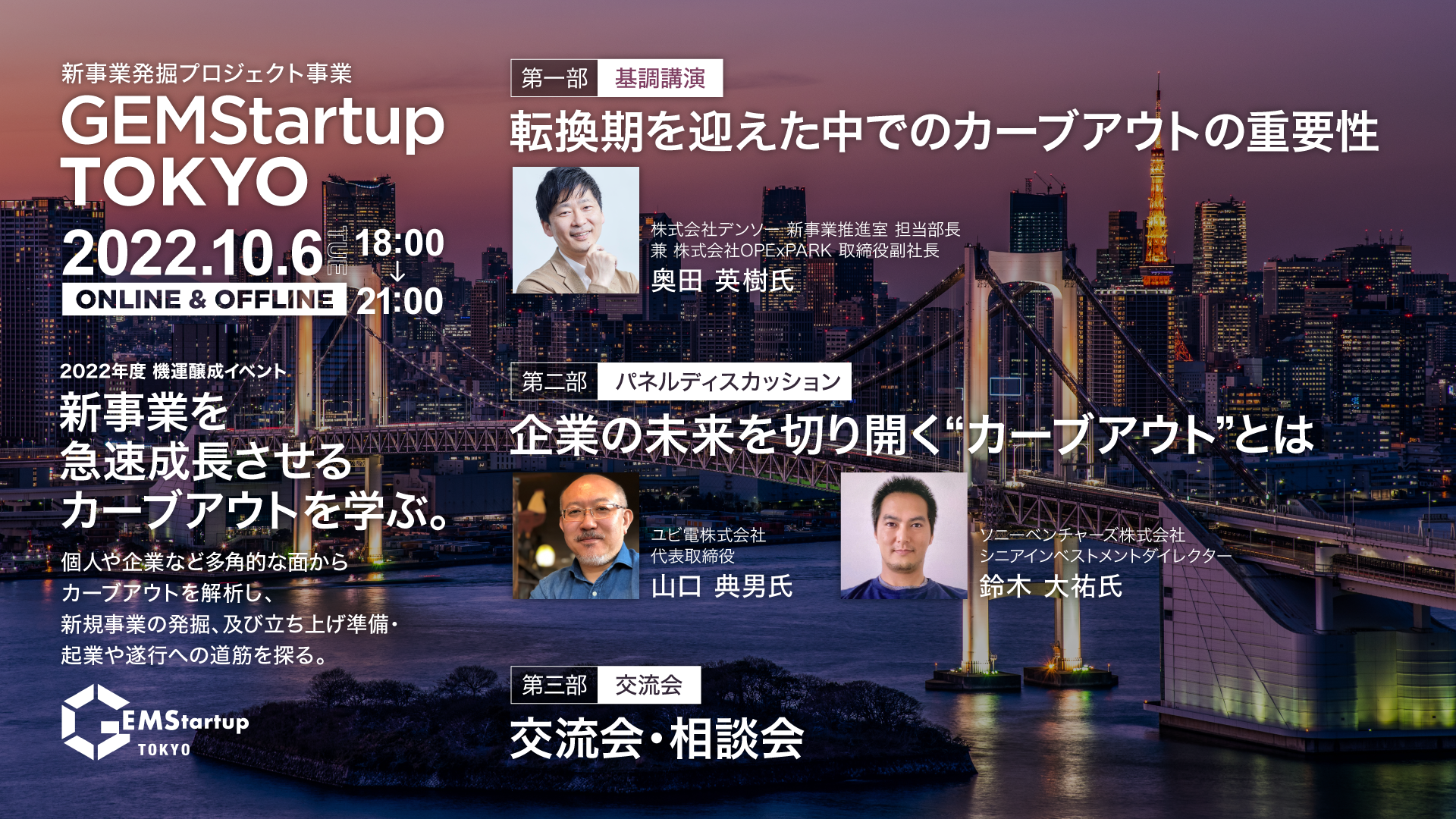 新事業を急速成長させるカーブアウトを学ぶ。新事業発掘プロジェクト事業(GEMStartup TOKYO)機運醸成イベント 10月6日(木)に開催!