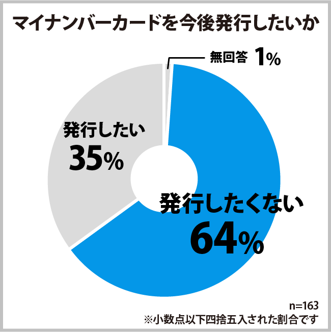 逆に、発行したくない理由も聞きました。発行したくないと思っている人の方が圧倒的に多いのは、「個人情報が漏洩しそうだから」という不安が大きいためです。万が一紛失した時に、医療情報などが流出することを心配している人が多かったです。