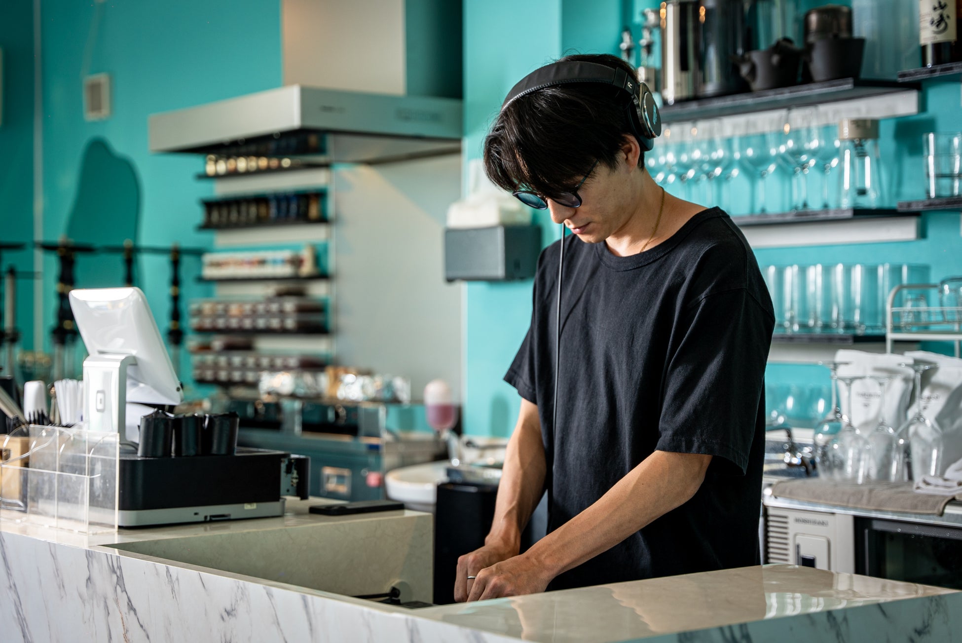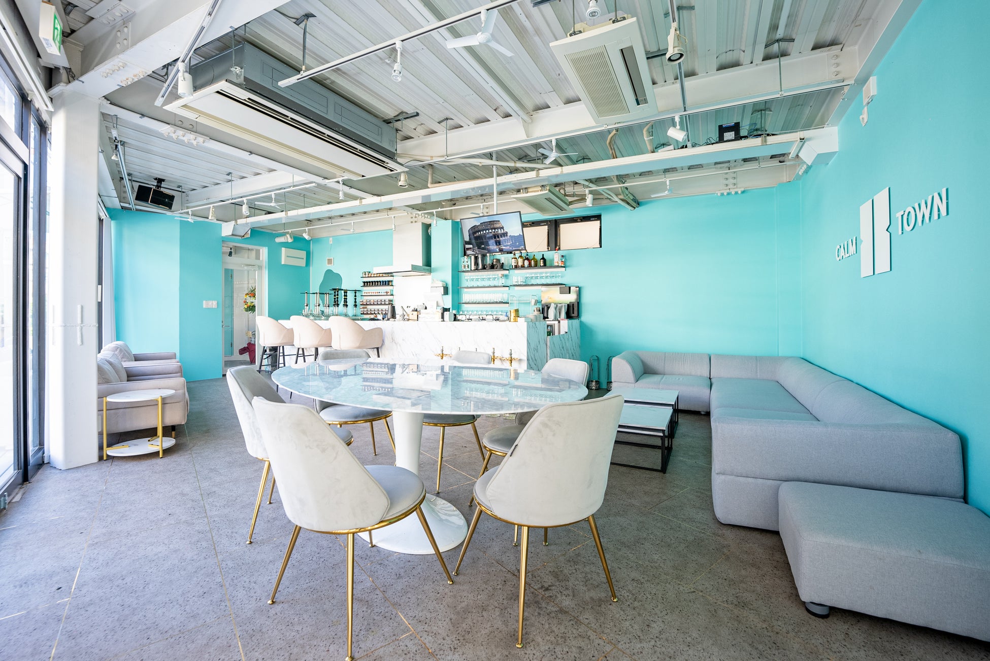 店内は、イメージカラーのティファニーブルー&大理石を基調としたお洒落な作りになっており、リモートワークの場所としてもお使い頂ける、快適な空間が誕生いたしました。