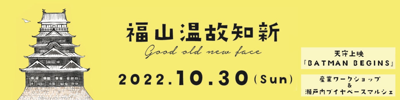 株式会社umika(所在地:広島県福山市明治町、代表:谷田恭平)が福山城400年博-FUKUYAMA CASTLE-市民企画事業としてイベント企画および協賛を務める、地元のこどもたちに、福山・備後エリアの“技”や“魅力”を伝える祭典【福山温故知新 - Good old new face - 】が10月30日(日)に福山城(広島県福山市丸之内)にて開催されます。
