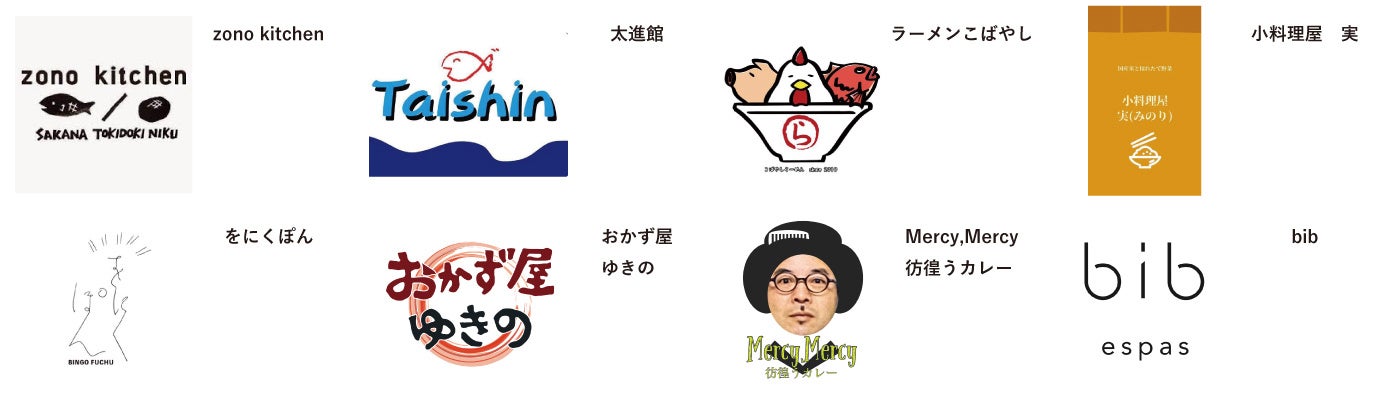 出店者一覧:Zono kitchen、太進館、ラーメンこばやし、小料理屋 実、をにくぽん、おかず屋ゆきの、Mercy,Mercy彷徨うカレー、bib