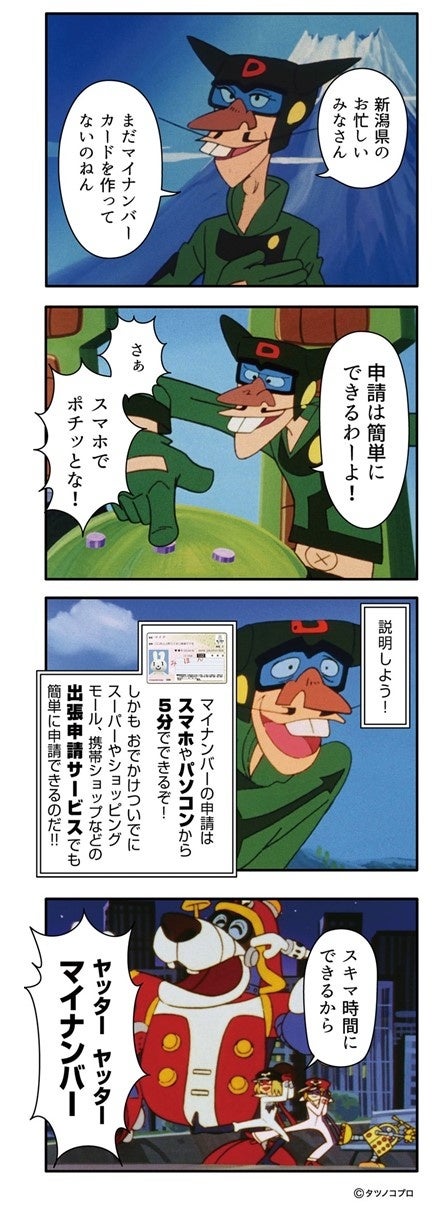 マイナンバーカードの取得拡大に向けて、新潟県がタツノコプロのアニメキャラクターとコラボ!
