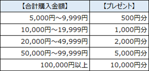 ※期間中、合計5,000円以上のご購入が条件です。