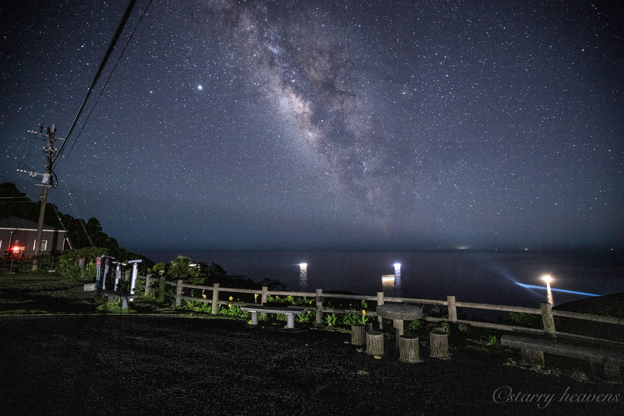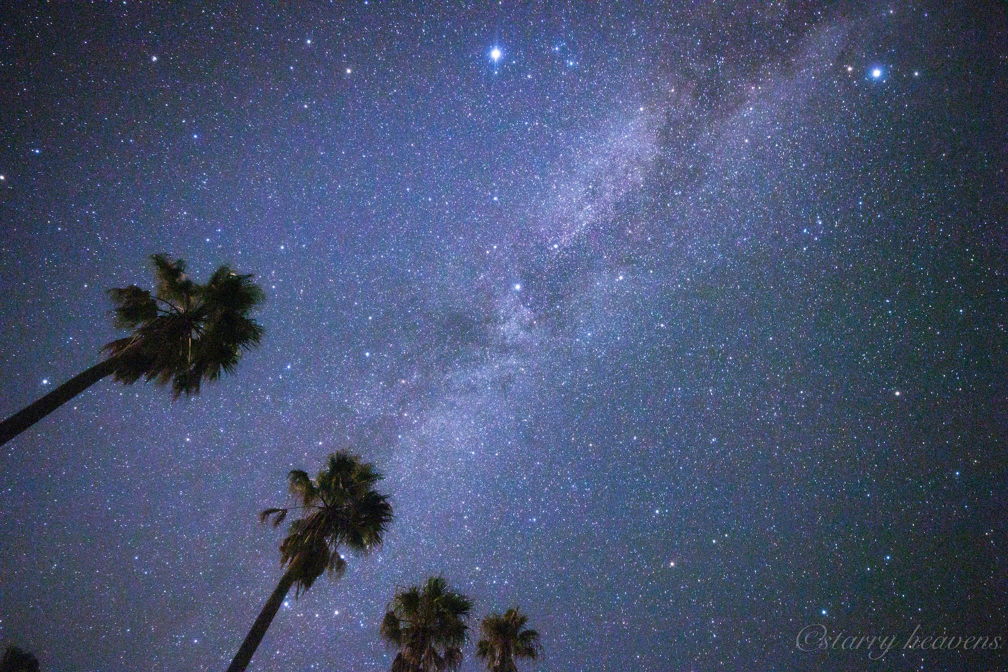 天の川とそびえ立つヤシの木とのコラボレーションや、灯台の青い光とのコラボレーションなど、思い思いの場所で、空を見上げてみてください。