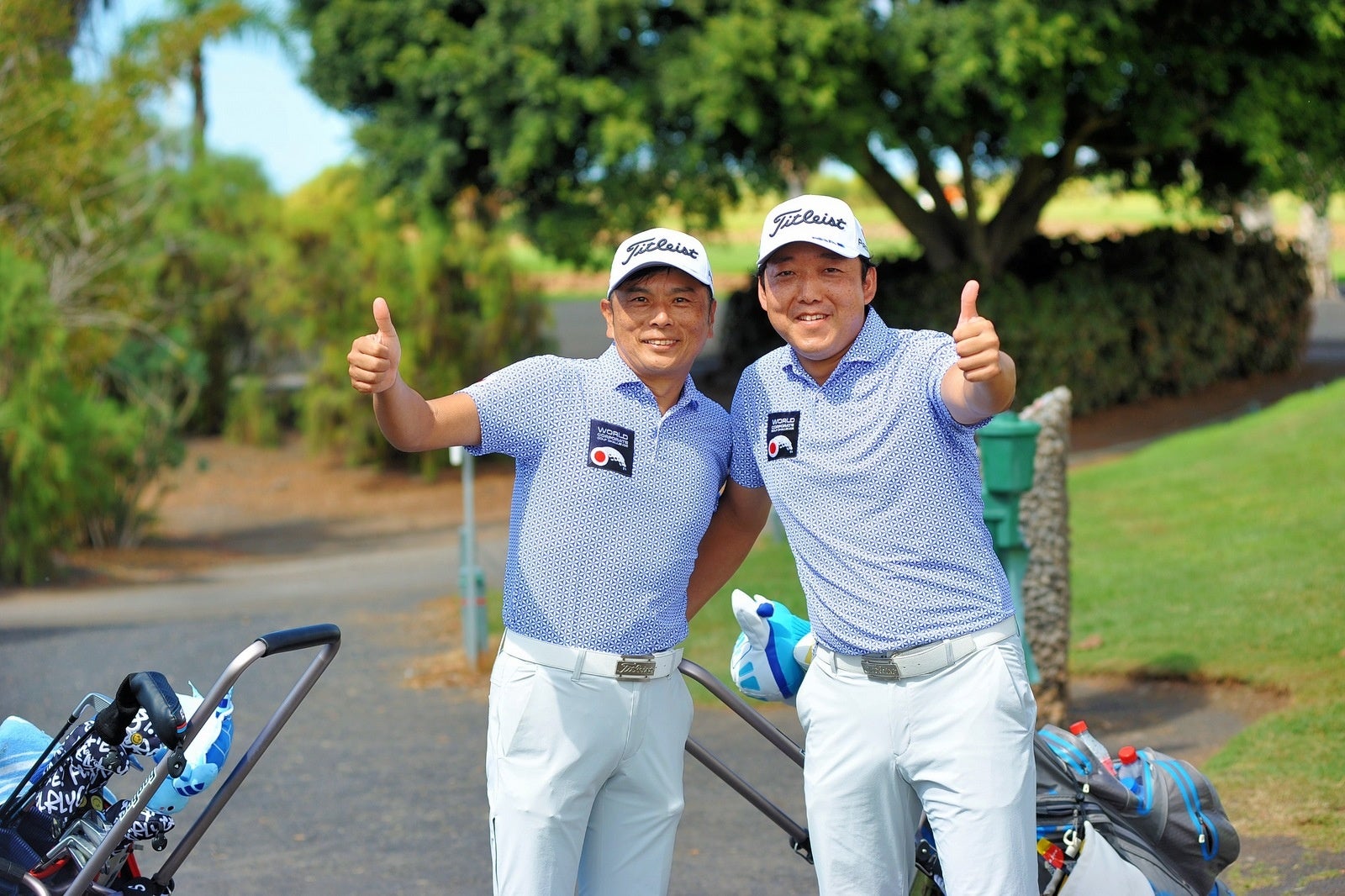 初出場となった浅井チームの鹿島選手と恩田選手。学生ゴルファー時代からの友人同士という二人は職場も同じ。息の合ったプレーで初出場ながら8位に入賞いたしました