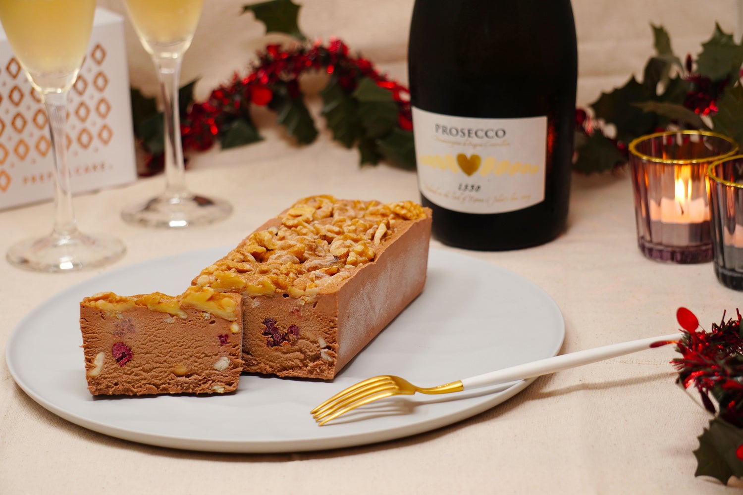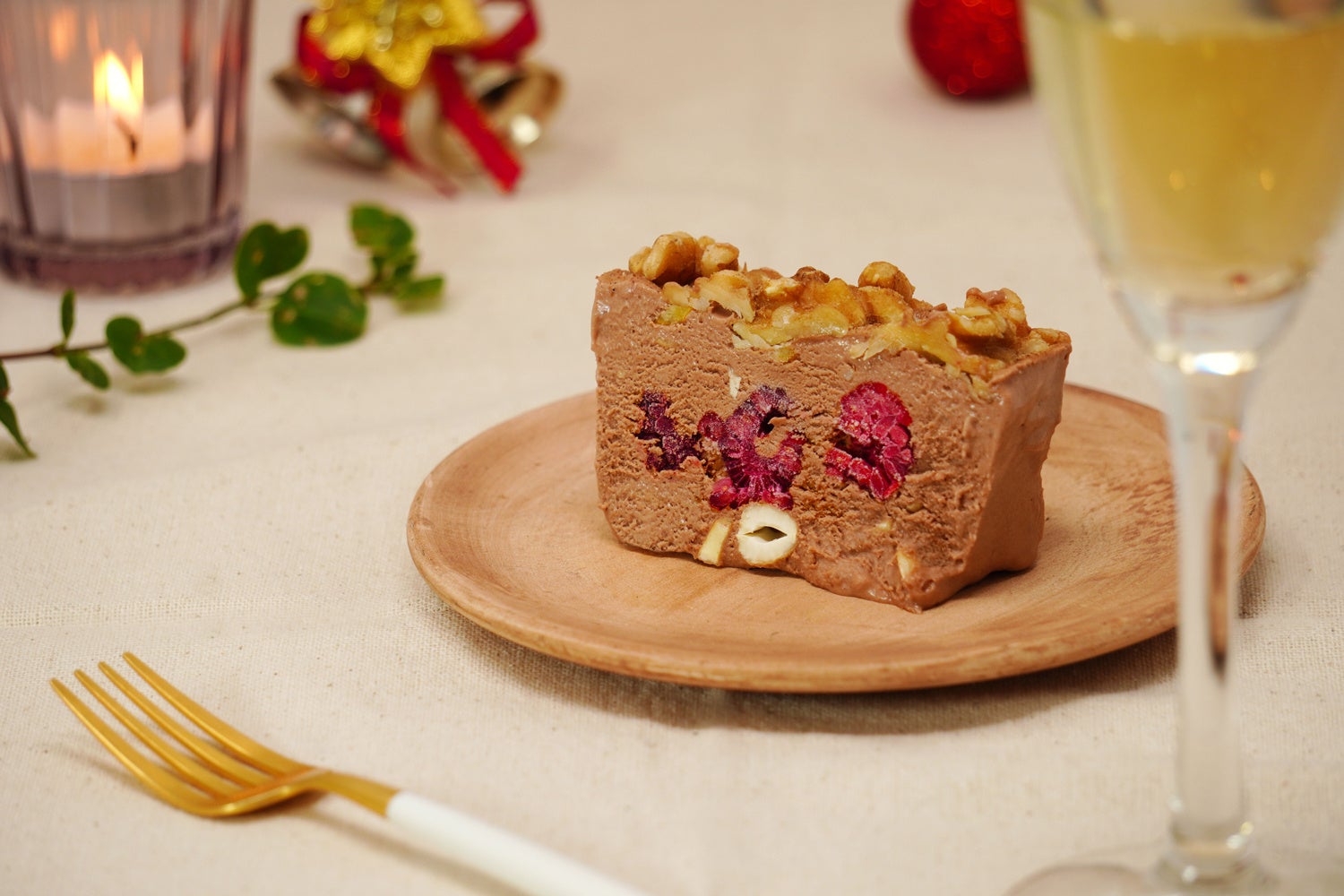 ナッツは胡桃とローストカシューナッツの2種を使用し、甘味・酸味・ほろ苦さの中で口の中をリセットしてくれます。隠し味の山椒・カルダモンが大人な味に押し上げ、シャンパンとの相性バッチリな仕上がりに。