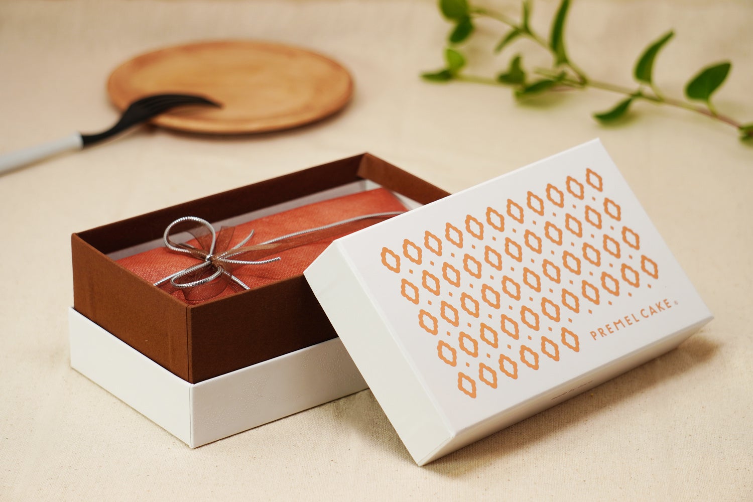 限定モデル「PremelCake-Cioccolato」(プレメルケーキ-チョコラート)では、ブランドロゴを全面ピンクゴールド箔印刷でデザインしたオリジナル箱でお届けします。