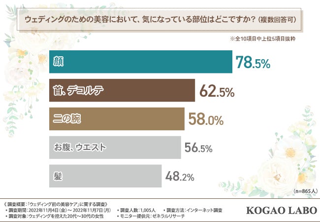 ウェディングのための美容について気になっている部分は約8割の方が『顔』と回答!