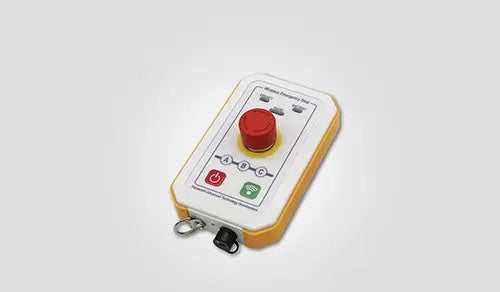 「@seguro wes」は、遠隔からの非常停止を実現する小型の無線デバイスです。ボタンを押すだけで、遠隔から機器や装置を停止させることができます。